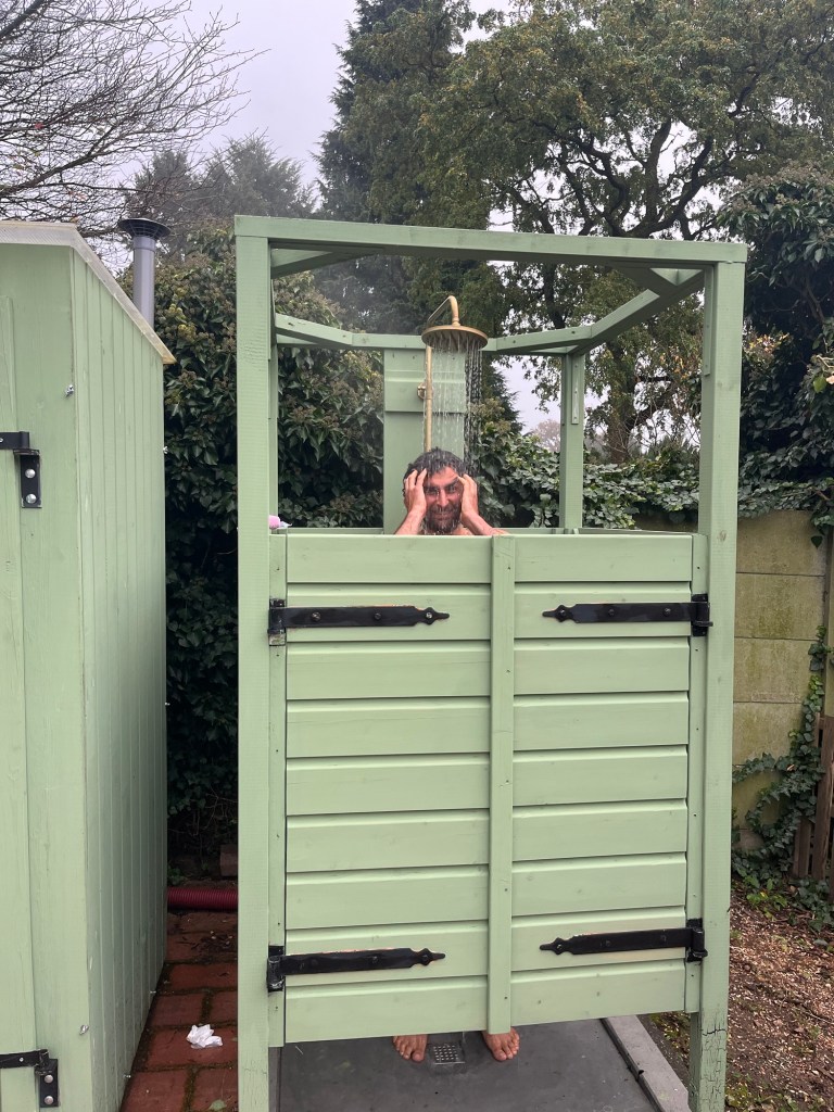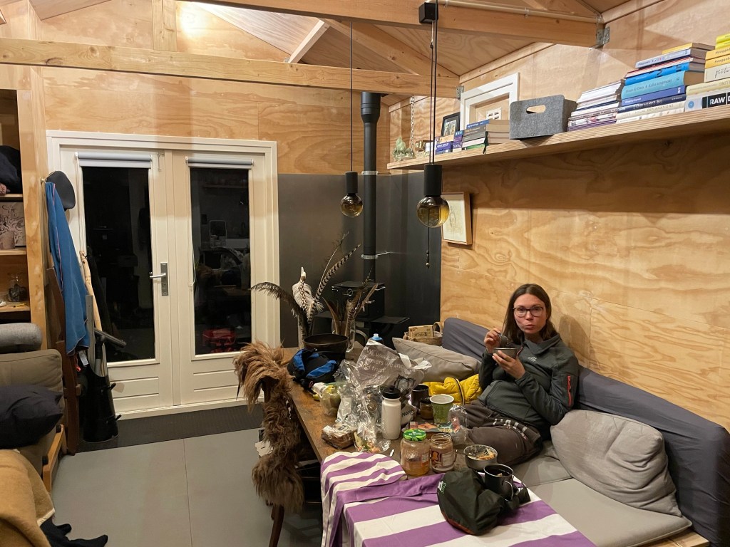 Carien was so friendly and welcoming it was refreshing. We struggled to imagine such kindness from someone jn the UK but perhaps we are wrong. She showed us the place to put the tent as well as the compost toilet and an outdoor shower. The garden was a wild, nature friendly space and it felt very comfortable to be camping in. After a chat and a hot cup of Starmint tea with our host we set off up the garden to set up.