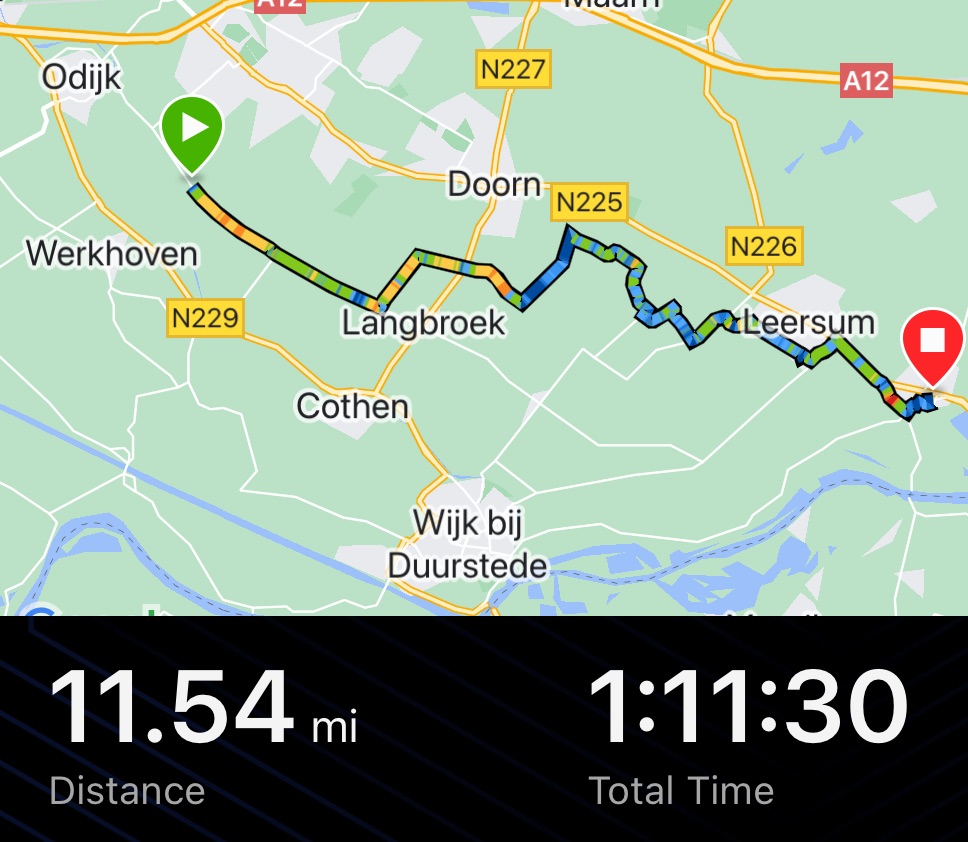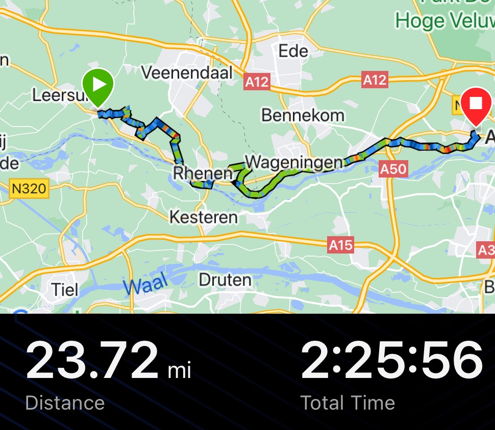 The route was a mix of travelling through towns and the woodland paths connecting them. Later we were back in the fields as we approached Arnhem.