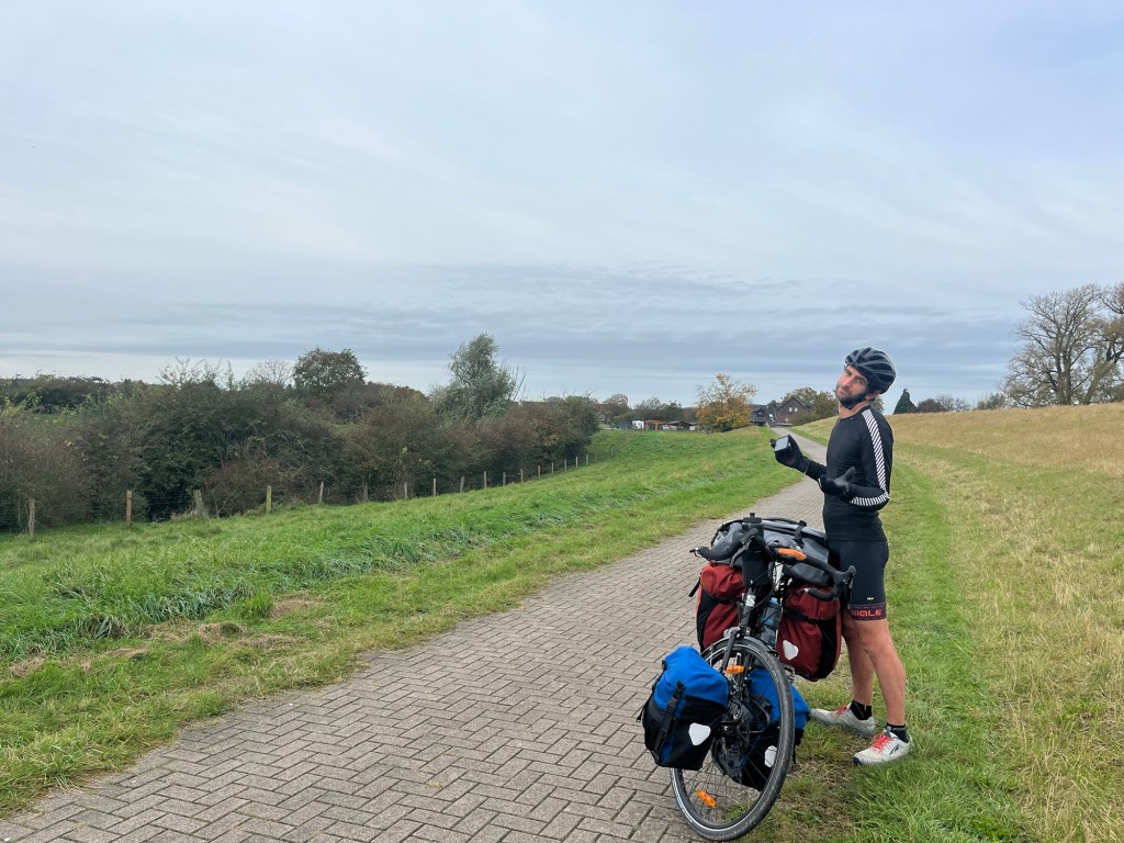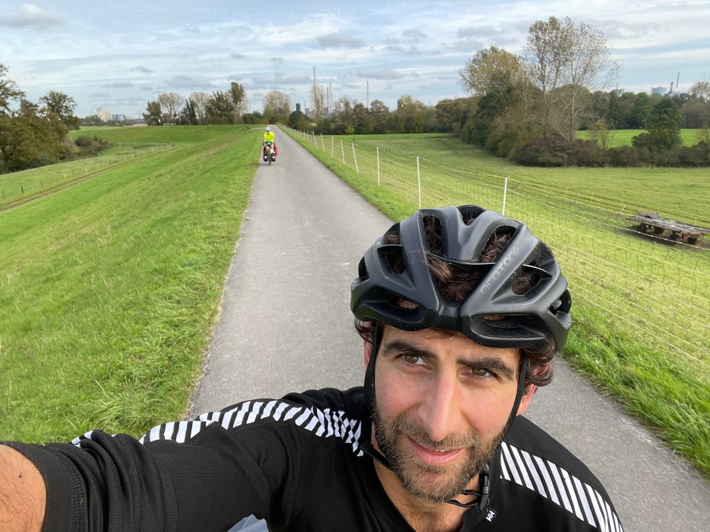 We said our farewells and set off towards the river on gentle rolling roads with wide cycle paths. We soon found the path and also the wind. It was blowing hard towards us and we were up there on the bank fighting it for quite a while. Luckily we both had good experience with such conditions.