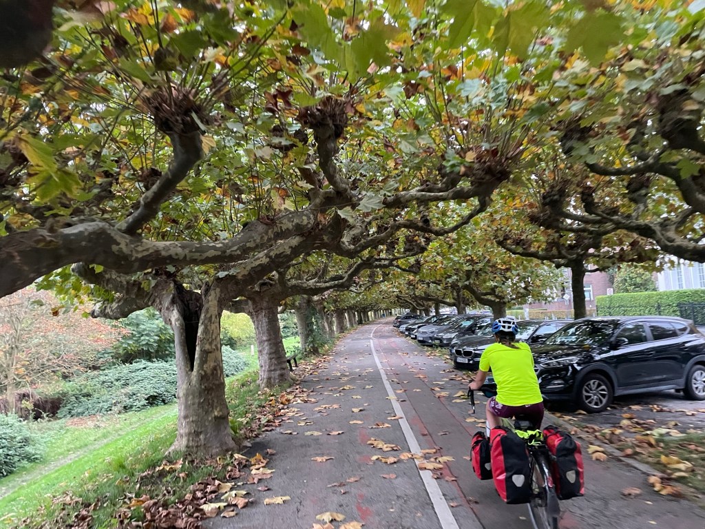 It was a bright morning. The Sun rising creating a beautiful sunrise across Siggi’s garden. We were keen to get going as early as possible to cover the miles to Dusseldorf. We had found a guest house to stay in for two nights on the outskirts. As Monday was going to rain extensively we planned to hide!
