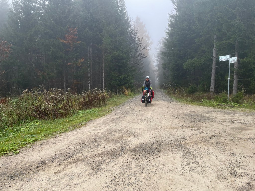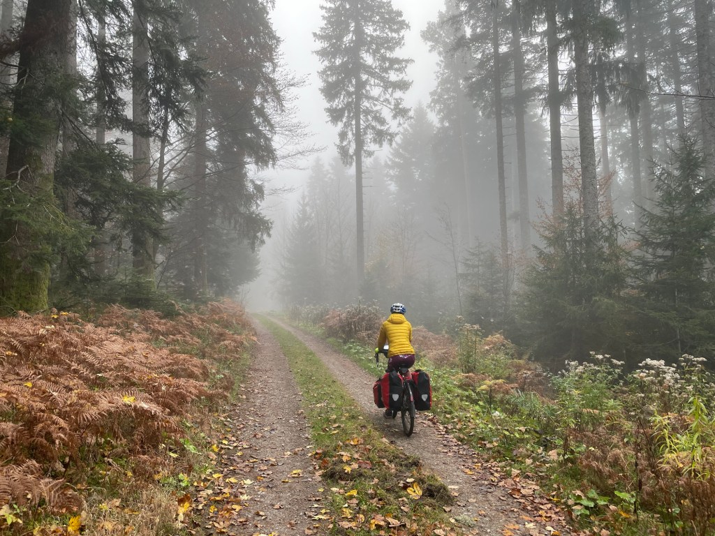 We left Freudenstadt and immediately began climbing again. We should have waited another half hour for the cake to digest! It was a very steep hill, as we relented and began to walk a man coming down explained that we wouldn’t be seeing any views that day! Not what we wanted to hear. It was a hilly route and full of ups and downs which made it hard to stay in a good rhythm. As the day went on the Sun revealed itself more and more. We felt like we were chasing it at times, its light blessing the ground ahead.
