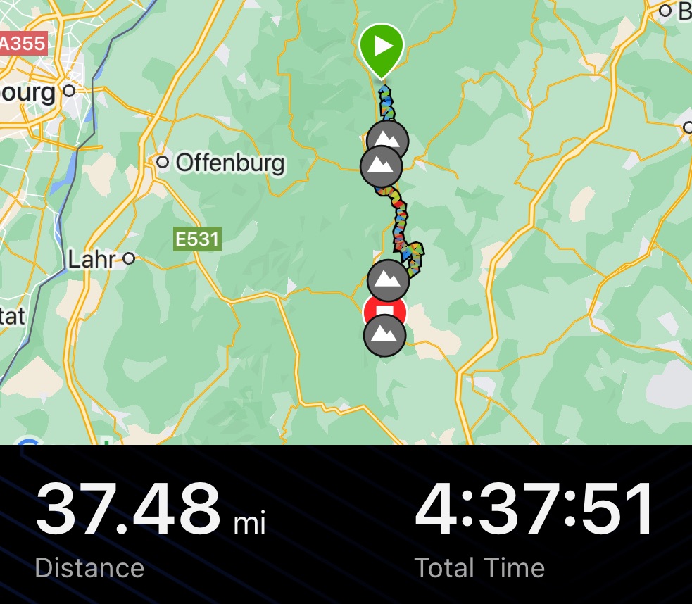 Having trudged backup to the track we began rolling down. We were hoping it would be a nice downhill roll into Freudenstadt. A town that potentially had a nice cafe, with vegan cakes. Though we initially went down, we then had to climb again on weary legs.