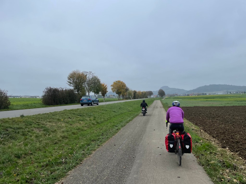 We rolled down the gravelly track towards Behla. We were following the German cycle routes again, but towards Konstanz. We weren’t going to Schaffhausen anymore. It was Sunday tomorrow too. We soon found the slick tarmac cycle path and duly headed up hill. It was hopefully the last of the big climbs, for now anyway.