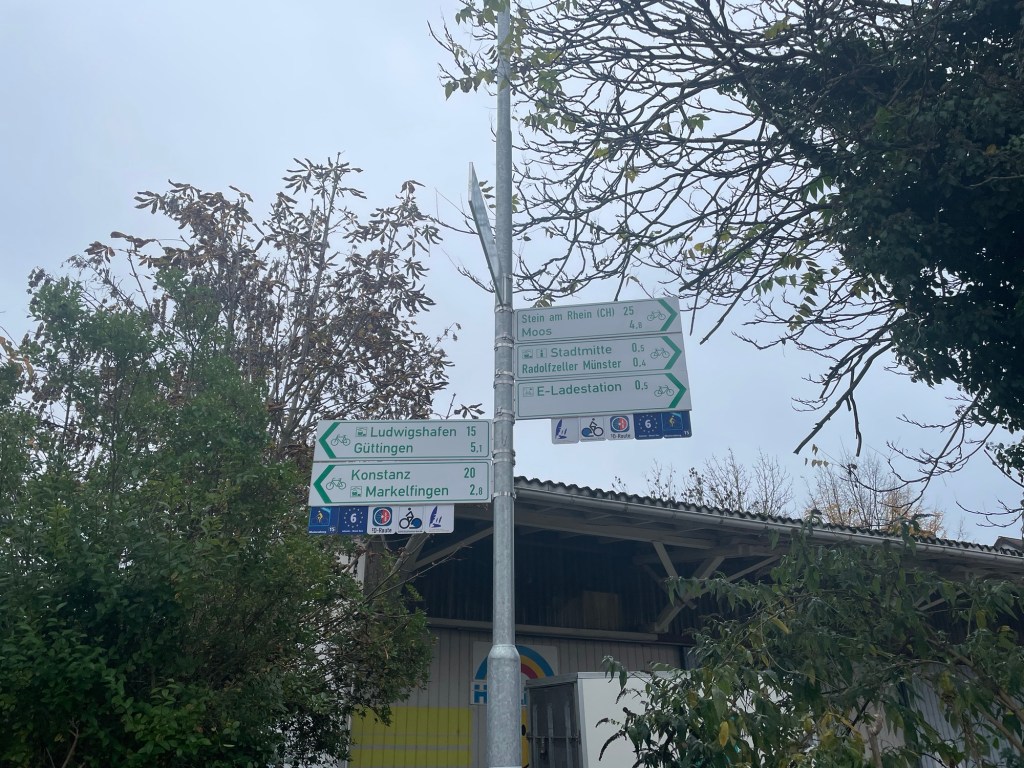 The path had become flatter and flatter and we were soon beside the Rhein again. Our old friend was back in sight. Except it wasn’t really the river, but Lake Konstanz, which is filled by the Rhein. The little blue EV15 signs became commonplace again. We hurtled along the path, still being overtaken by e-bikes as well as racers.