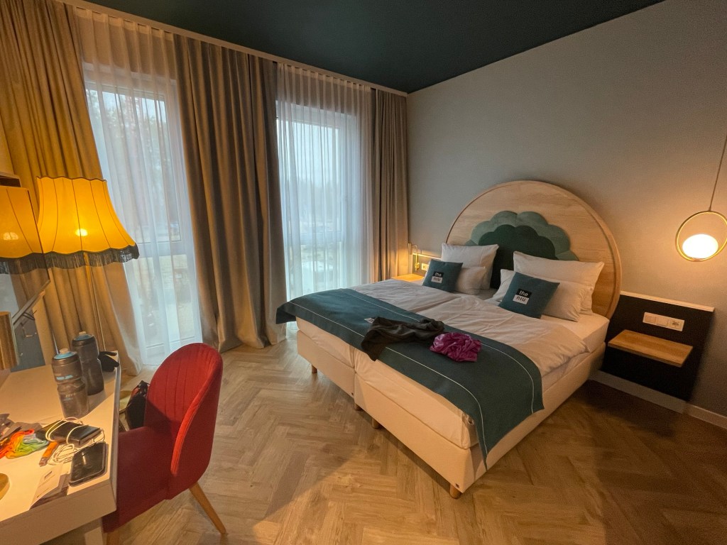 Presumably because of the holiday it was impossible to find a host on warmshowers. They were all busy or didn’t reply. The only thing we could find was a holiday inn and securing the bikes was always tenuous in such places. We shot off an email to try and clarify if we could store the bikes somewhere safely but also booked the hotel anyway as we could cancel up until 6pm. It was €98, very expensive but hopefully also comfortable.