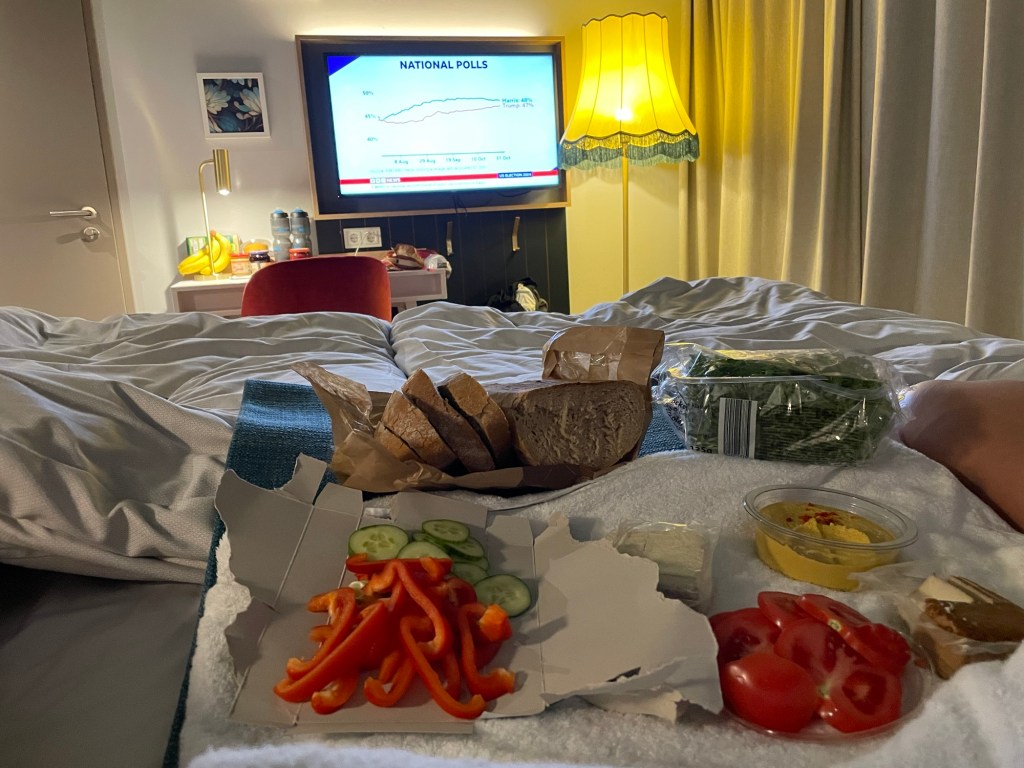 A hot shower and a comfy bed were luxuries we hadn’t had for 3 nights. You get used to slumming it but it was still very alluring to have room that’s yours. We ate dinner in bed, which was still our trademark assortment of bread, salad and tofu. Followed by bread, jam and peanut butter. Then our absolute favourite, lebkuchen. You can get them at home but the assortment is less varied. They’re a delicious German Christmas treat and warmed our bellies.