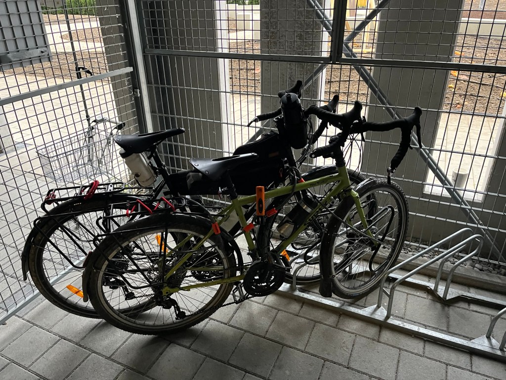 We left our bikes near the entrance and went to investigate their ability to let us in the cage. When we tried to call earlier the receptionist had zero knowledge of where bikes could be kept. The current receptionist immediately presented an NFC tag on a lanyard. And though we were slightly early we could check in.