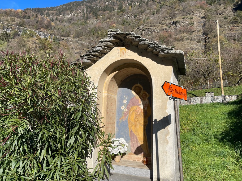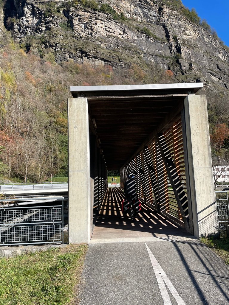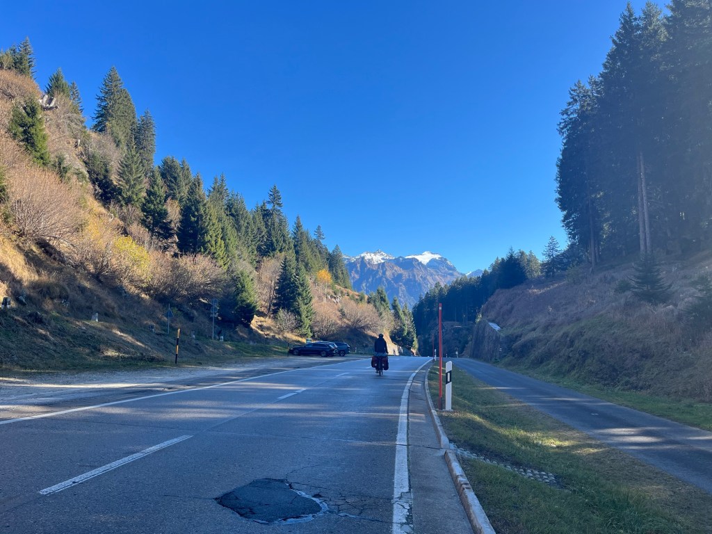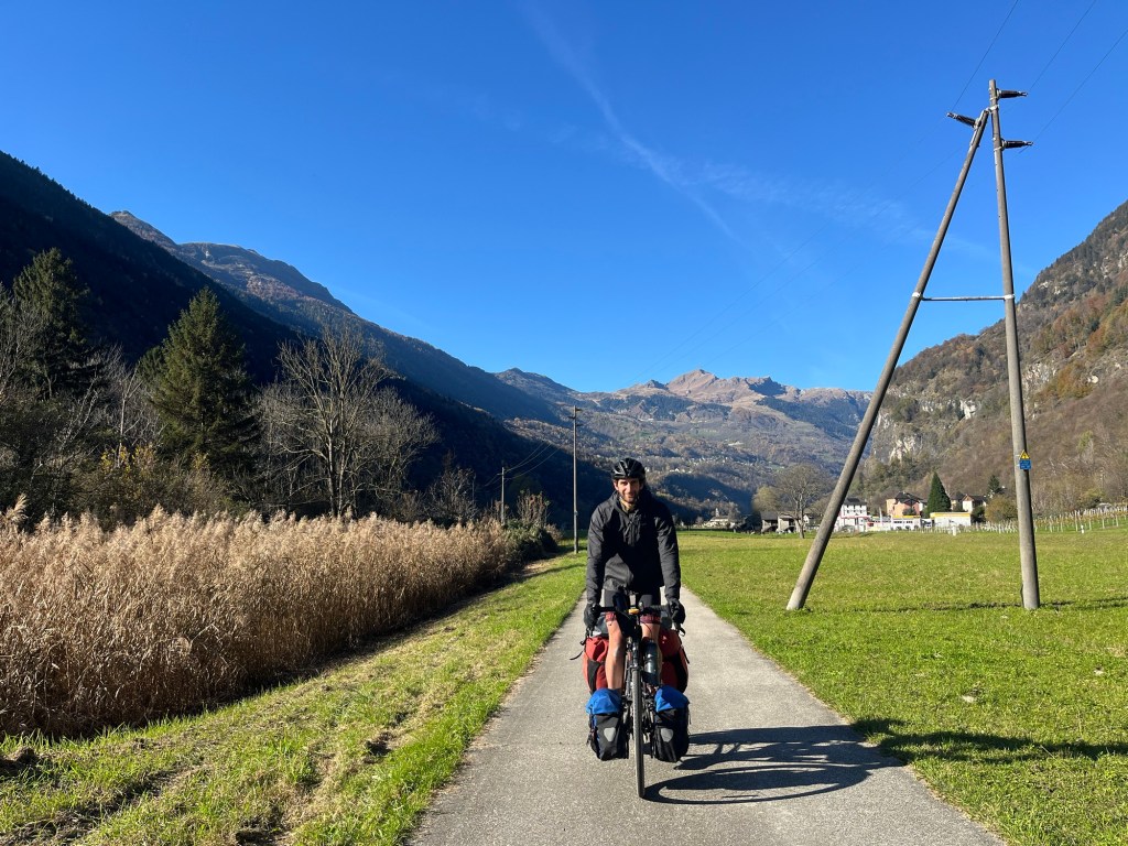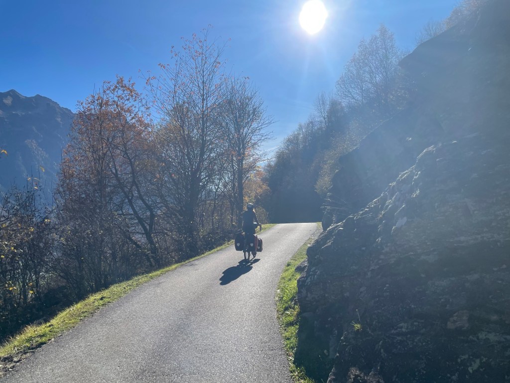At that moment Michael called. Michael was a Warmshowers host we’d contacted who lived in Bellinzona. He was enthusiastic to host us and even called us to confirm. It was a lovely gesture. We asked him which route to take. Equally beautiful, but the cycle route was in the darker side of the valley. Fuck cars, we thought, they make the descent even more hairier than it already was. Then we actually started going up hill. Our legs switching gears.