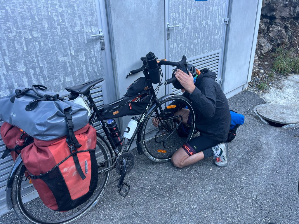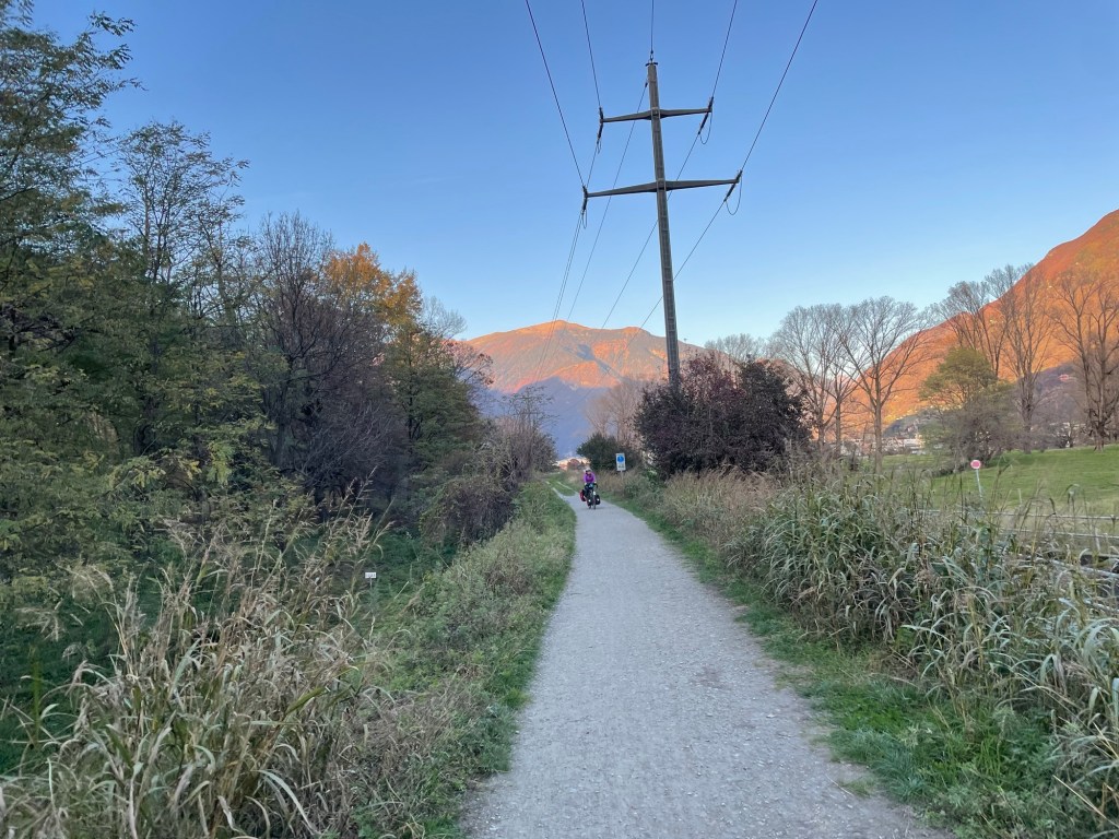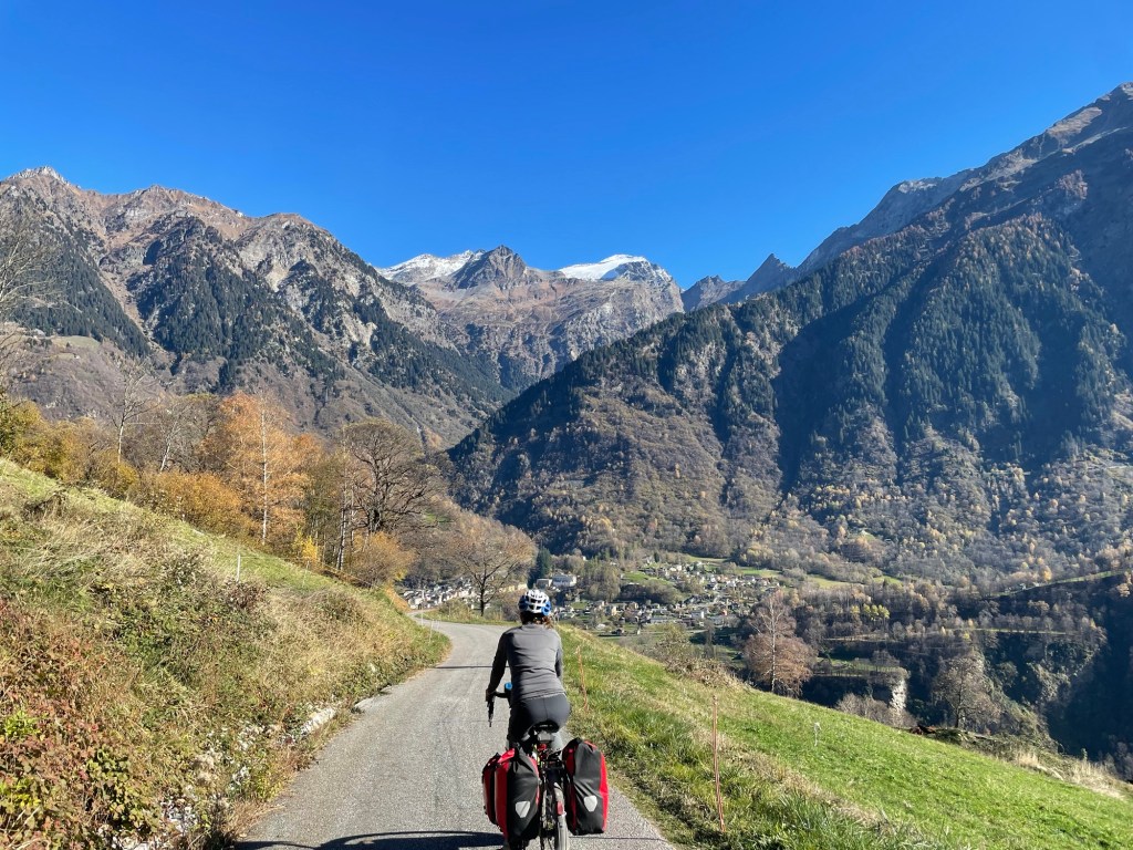 As we left Biasca we approached two snacking cyclists. One of them addressed us, where are you going, she asked. She was quick to tell us she was a Warmshowers host! A keen cyclist out with her not yet keen friend. And they spoke excellent English.