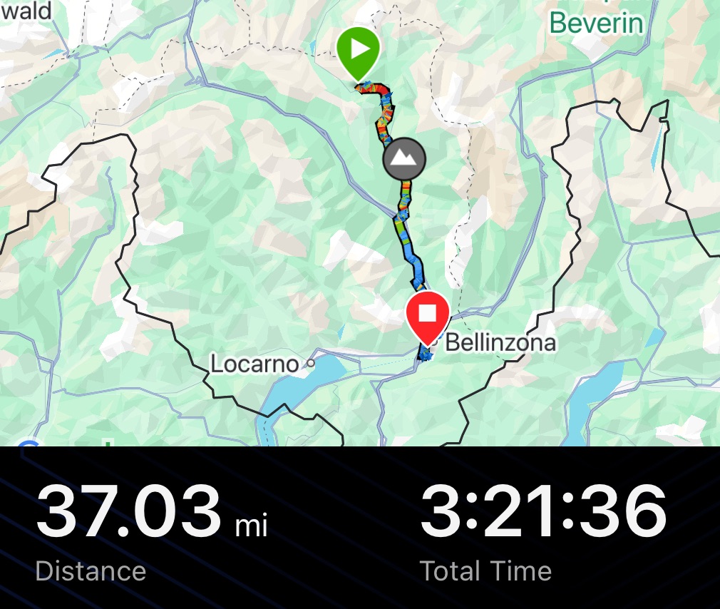 The descent to Biasca was glorious, small roads and multiple switchbacks. When we’d arrived at the hotel last night everyone was talking Italian. German be gone. Now we could see why. The architecture was markedly Italianate. We sailed down through pretty villages passing buildings with now shallow roofs and delicate ornateness. The hum of Italian voices when we passed a cafe.