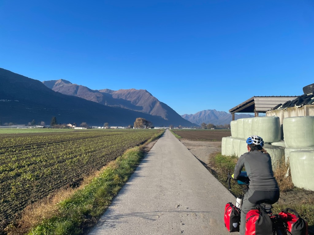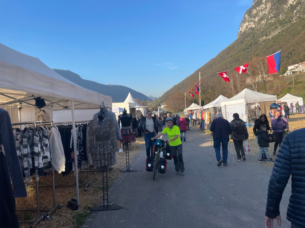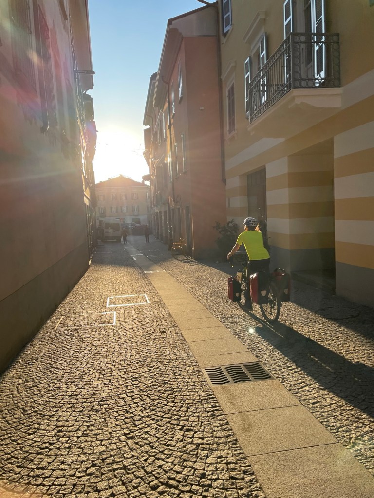 We left the lake and soon came upon the town of Mendrisio. Two orange liveried people stopped us to tell us we couldn’t cycle through. We were on the Eurovelo but they’d commandeered the space ahead for a farmers market. This was happening more frequently with the Italian culture. Diversions weren’t marked. We got chucked onto a busy main road earlier, the city worker merely telling us something about 2km. This may be a sign of things to come.