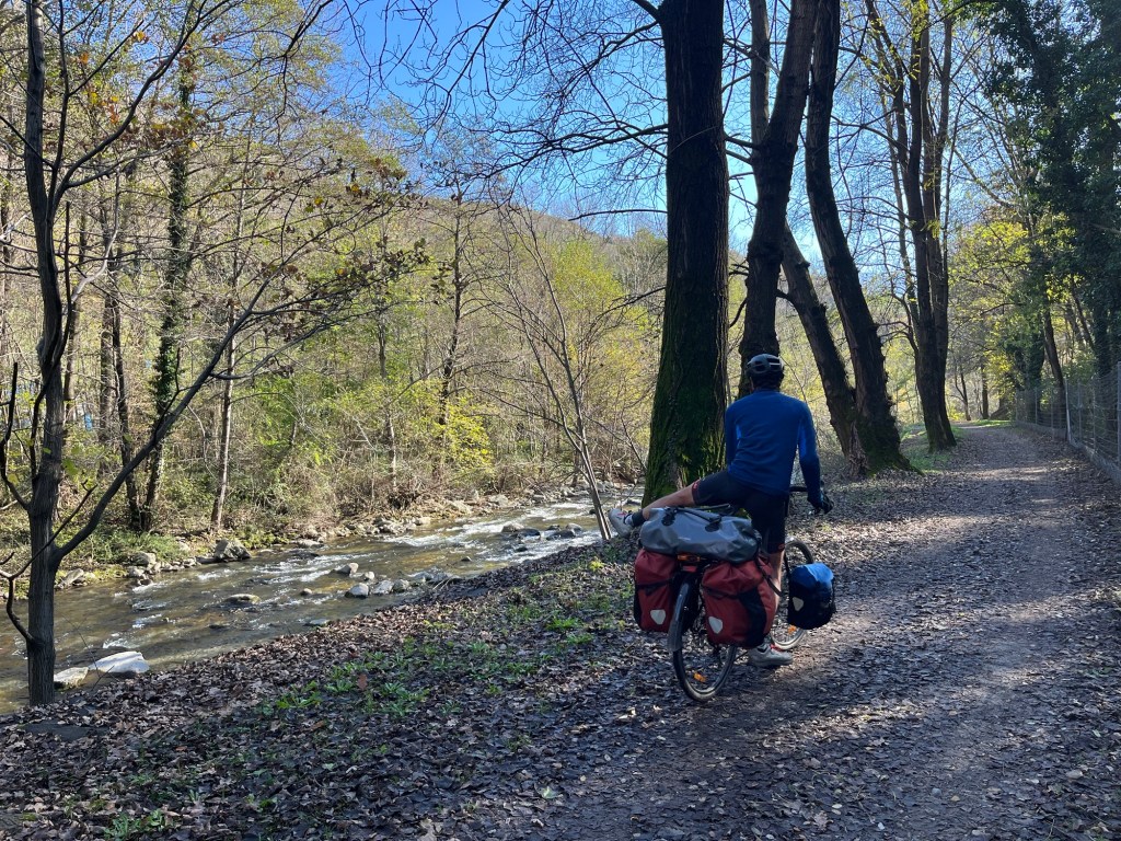 First we needed to leave the valley, it was full of motorway and we spent around 5km on a gravel track with a fence separating us from the speedway. We did dip into a pretty riverside path occasionally but the sound of cars still dominated the mind.