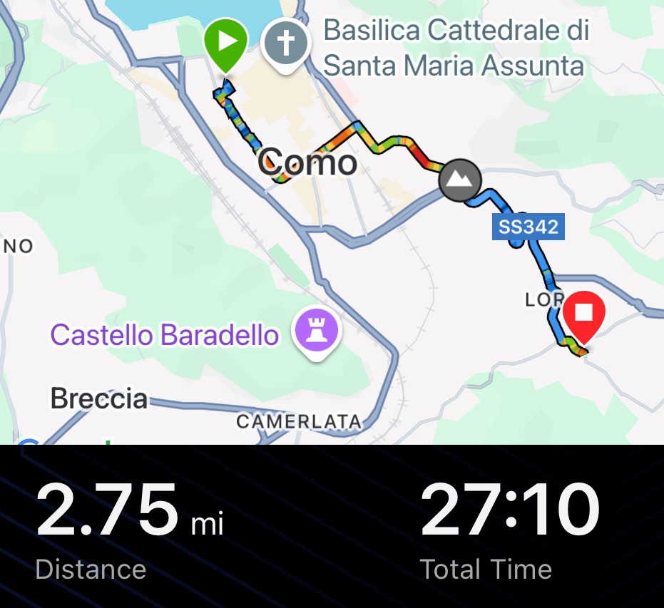Leaving Como requires a hill climb. It’s surrounded by the hills and we left to the east. We weren’t on any kind of Eurovelo route anymore. The EV5 heads south to Milan. We wanted to go to Venice. We could head south then east but decided that the lakes and mountains of northern Italy would be more exciting.