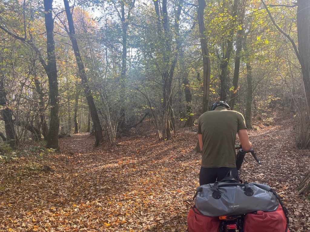Soon the route took us out into small villages then, climbing higher, into a wood. The path very quickly turned to gravel then rutted, leaf covered, tracks and we were hiking. So much for Italian cycle routes we lamented. Eventually out of the woods after at least a kilometre, we tried using Mapy.cz to find a route. It found roads, often with at least some pavement and knew where it was going.