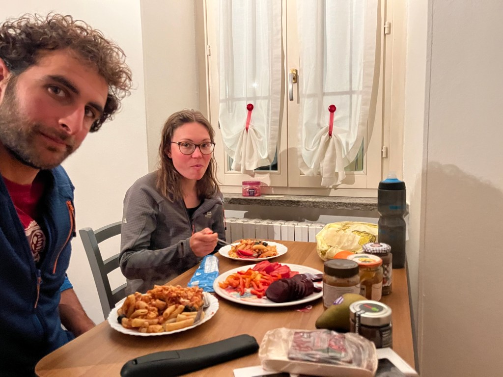 We went down to the supermarket to find some food. Pasta, obviously. There was a small vegan section, we didn’t buy the ultraprocessed burgers but can’t complain at having the choice. Seems that times have really changed. We bought plentiful olives and passata. The only vegan chocolate was 500g. Oh well, has to be done.