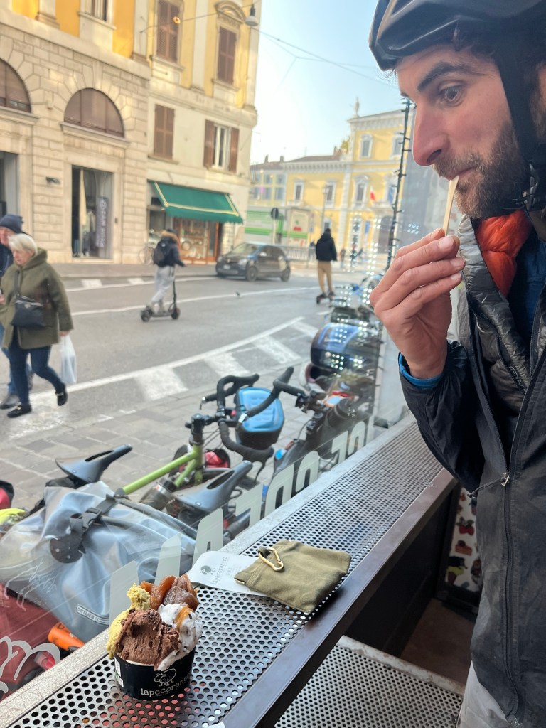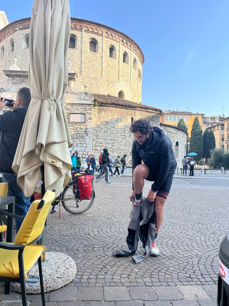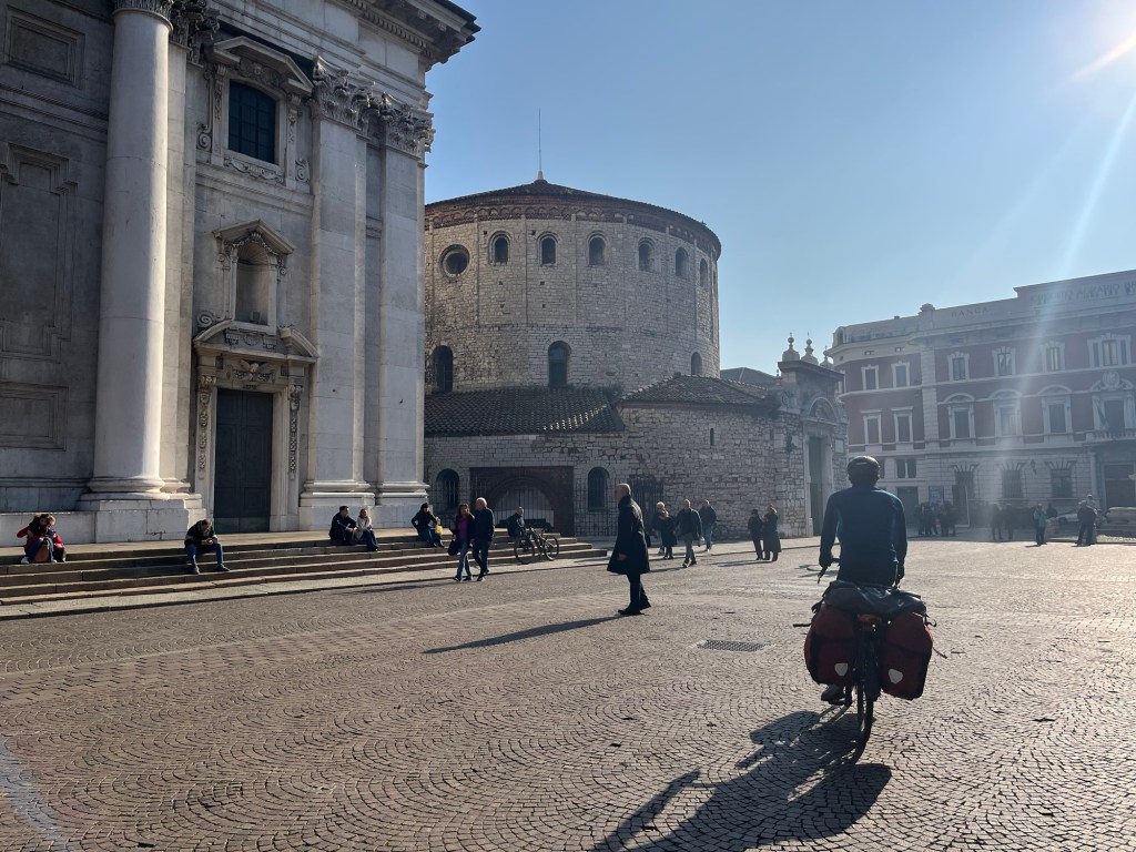 We arrived in Brescia around noon. It was an interesting city and fortunately the route took us straight to the piazzas and the duomo (cathedral). It was a very popular place to be on a Saturday. The tight streets packed with market goers and tourists. Attempting to go round the market we ended up pushing through a crowd of street drinkers. It was a beautiful day, who could blame them, but having to shout ‘scuzi’ in their ears only to have them ignore you was a little weird.