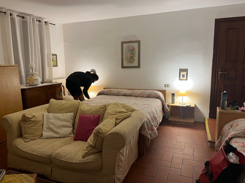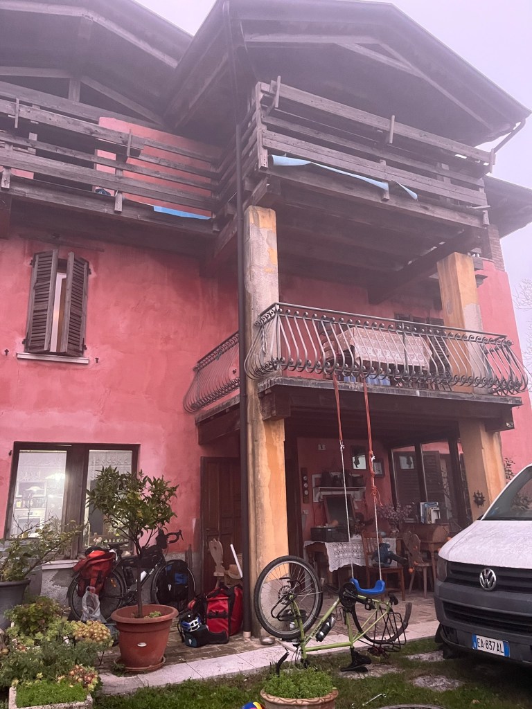 The farmhouse was heated by Giovanni’s continuously tended fires. An open fire as well as a large AGA. The house smelled strongly of smoke. He seemed to live alone and routinely went outside to chop more wood. It was clear the house was deteriorating and much of it was clad in scaffolding.