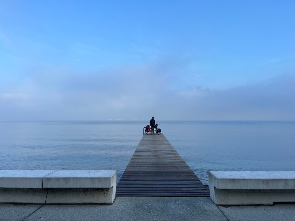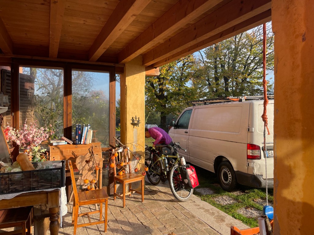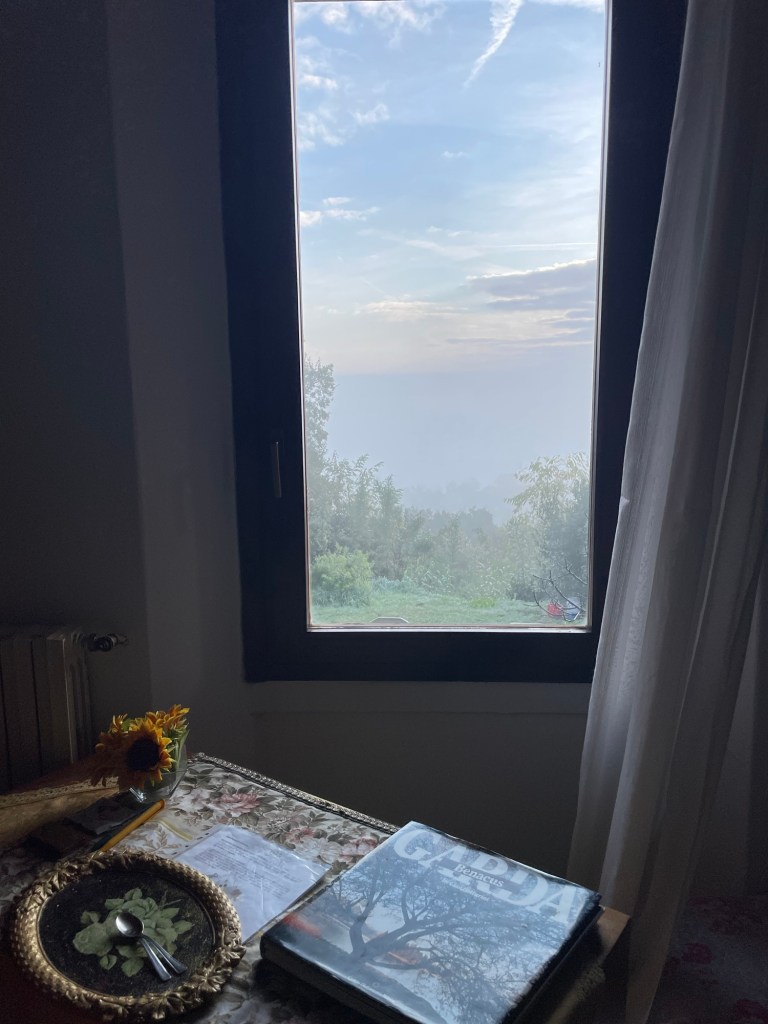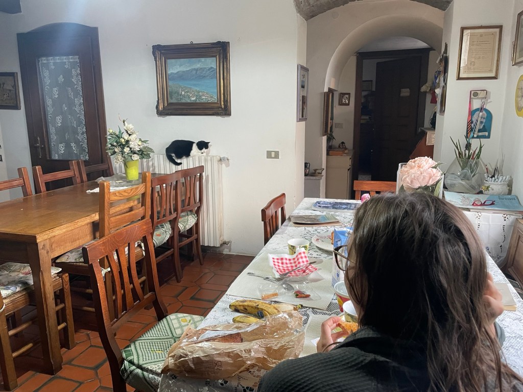 The orange light visible from our bed suggested the fog had gone during the night. In reality it had diminished, but we still couldn’t see the fabled lake. Giovanni included breakfast in his Airbnb price. Which actually kind of makes sense given the name of the site. It was only some of that dry toast and jam, well there was cake, but it definitely wasn’t vegan.