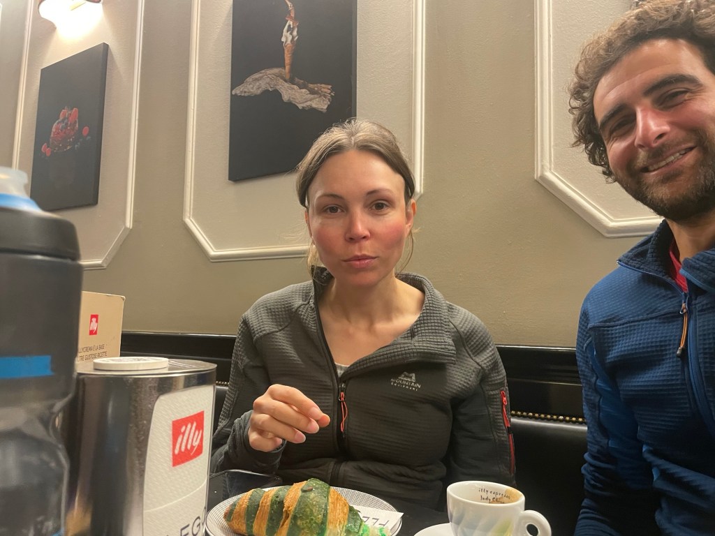 We also stumbled across the beautiful Piazza delle Erbe, with its mural covered old walls and imposing tower. It was the sight of a market as it is everyday. Nothing too exciting to buy though. The coffee shop was a nice treat though a little underwhelming. We wanted there to be filling in the chocolate croissant damn it! The fig one had green food colouring stripes which was exciting alongside the enclosed jam.