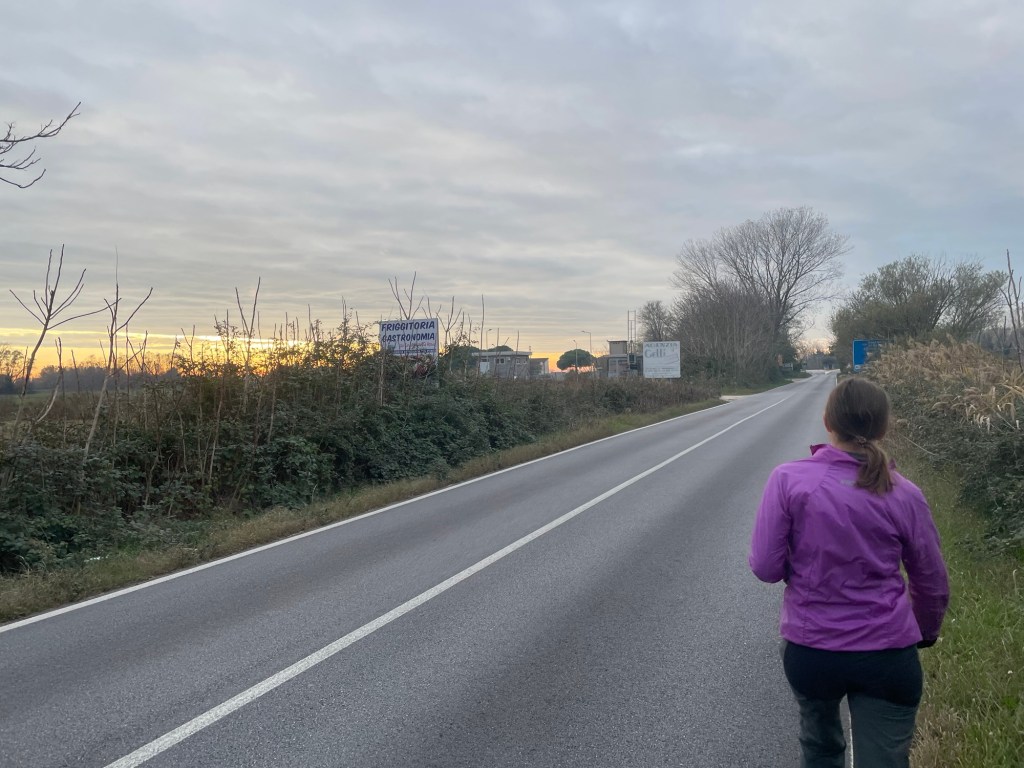 We hadn’t been to a shop yet and didn’t have much food. We thought we could finally make it to the Eurospin, about two kilometres away, on foot. Though the first 500m had a footpath, the rest did not. It was a somewhat sketchy walk to a cars only destination. The road suddenly became busy and though often smiling, most Italian drivers had little concern other than just not hitting you.