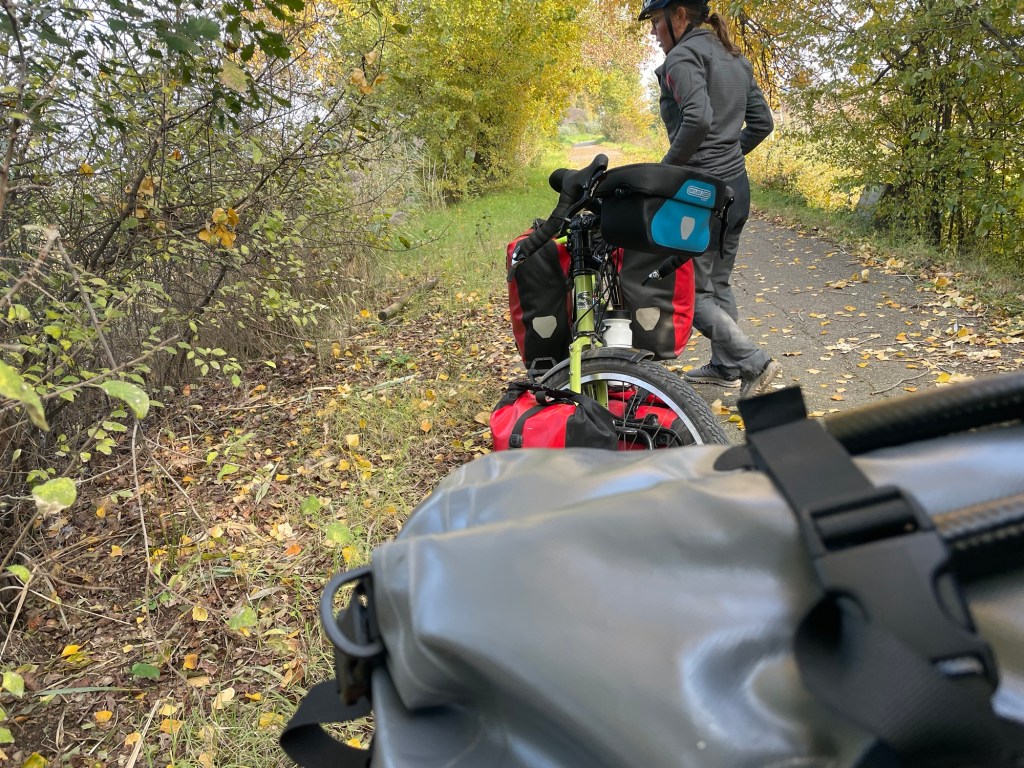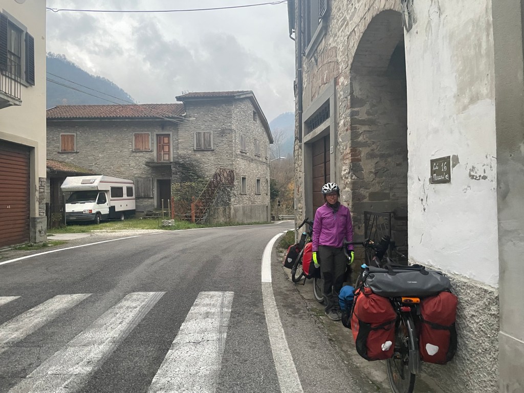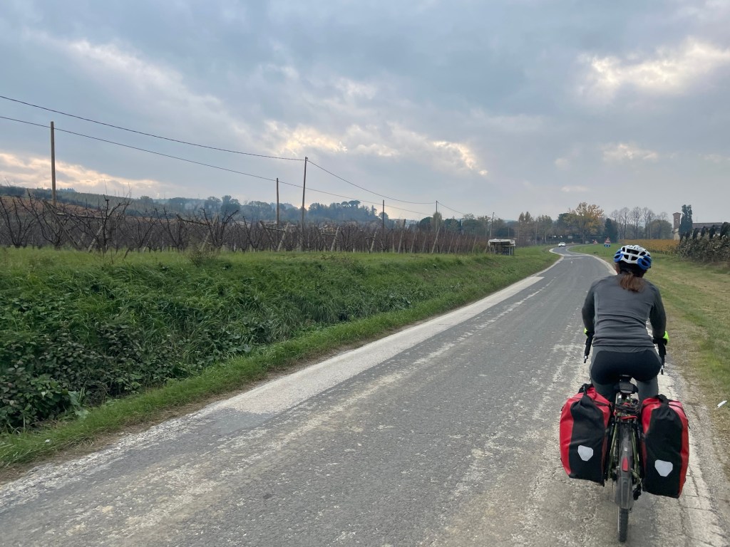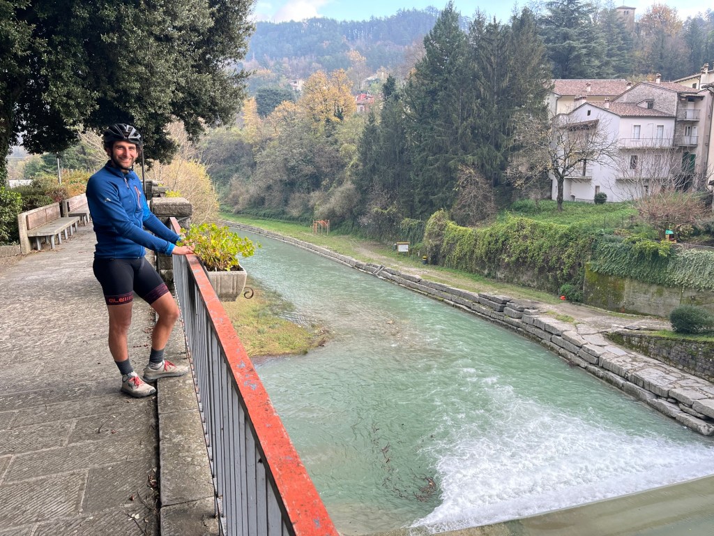 It was a cloudy day, the Sun occasionally brightening the sky, but it wasn’t cold. There was a train line next to us that rose with a perfectly continuous gradient as we meandered above and below it. The mountains rose up around us, covered in trees. None of that naked desolate landscape we’d been normalised to at home. As the Sun came out even more we were suddenly moving fast down a hill and crossing the border into Tuscany. The road was now called the SR302.