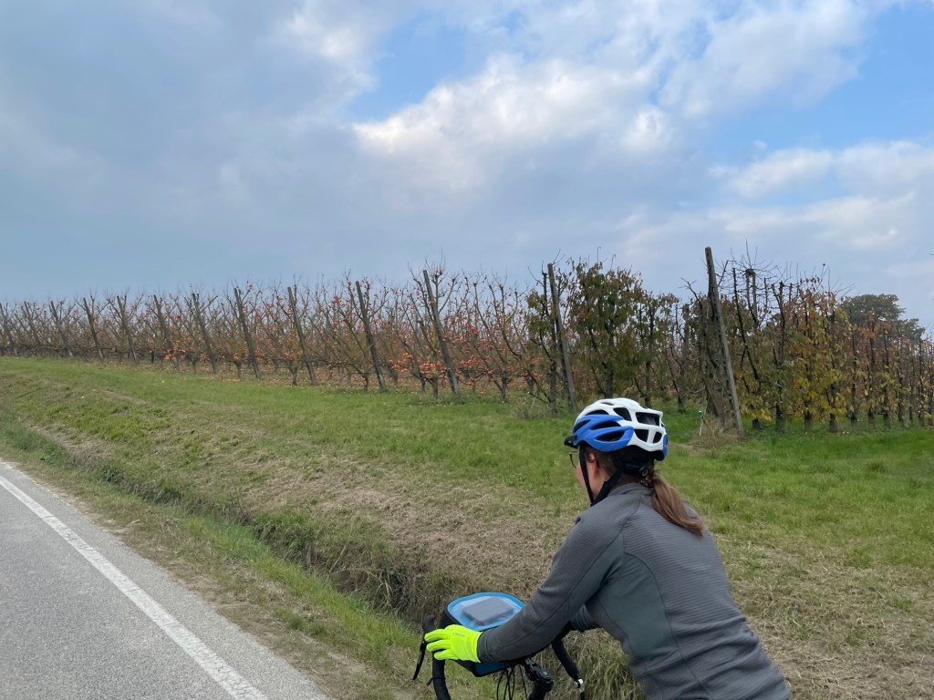 As we left the town we started slowly climbing. It was a comfortable climb with a gentle gradient which continued through some pretty villages straddling the Lamone, which we were still following. On the way we were surrounded by Cachi (persimmon) orchards. So many fruits it was crazy that they were so expensive in the supermarkets, while at home they were often 3 for a £1 this time of year, here they were about 90p each.