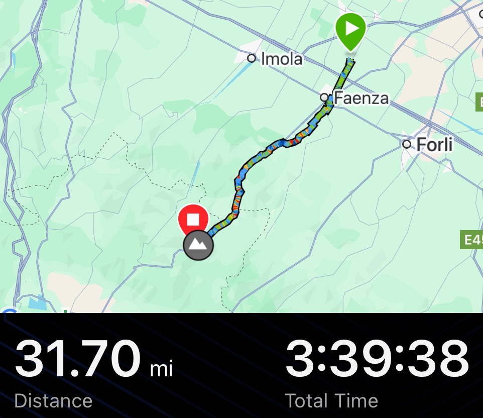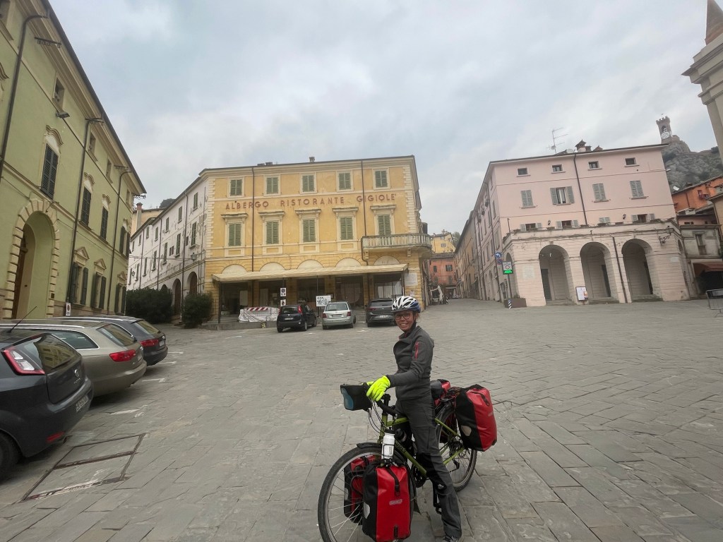 Faenza was briefly viewed but we trusted the route to show us anything worthwhile stopping for. Probably because we were heading back into the hills today. To head south in Italy we had the choice of staying on the completely flat east coast next to a huge road for weeks on end, or crossing the Apennines, twice. The mountains continue the length of the Italian peninsula. We’d never really considered the terrain of Italy until now, but it is rather mountainous.