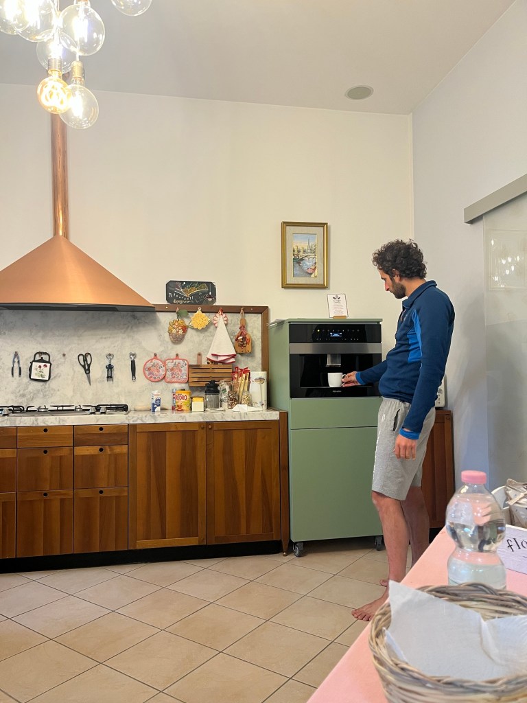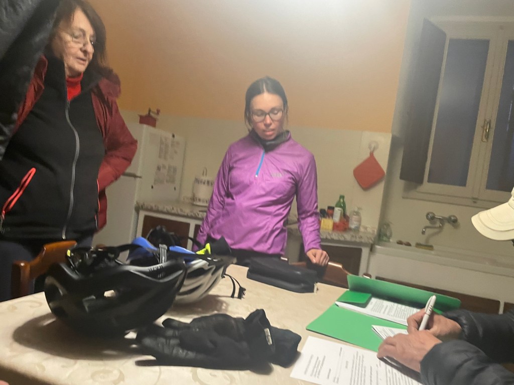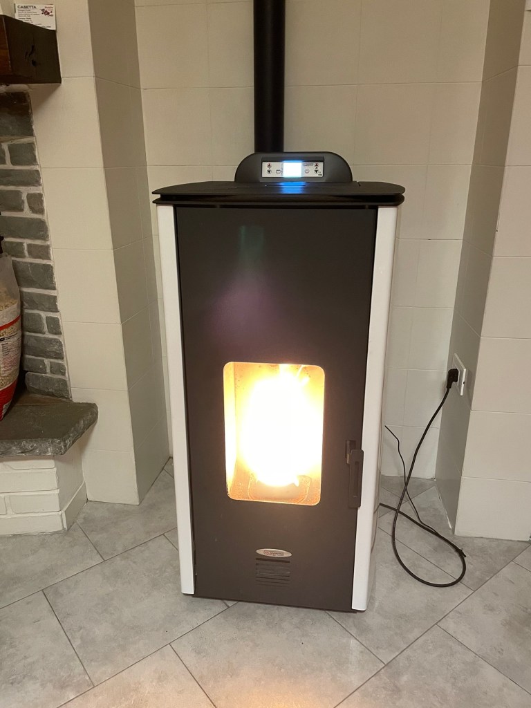 They turned the pellet burner on and made the bed for us. We were keen just to relax but they insisted on providing detailed instructions in Italian that we had to translate. The man was incredibly vigorous, demanding the full attention of Jonathan by occasionally poking his shoulder. Jonathan was trying to look at his phone to read the translation!