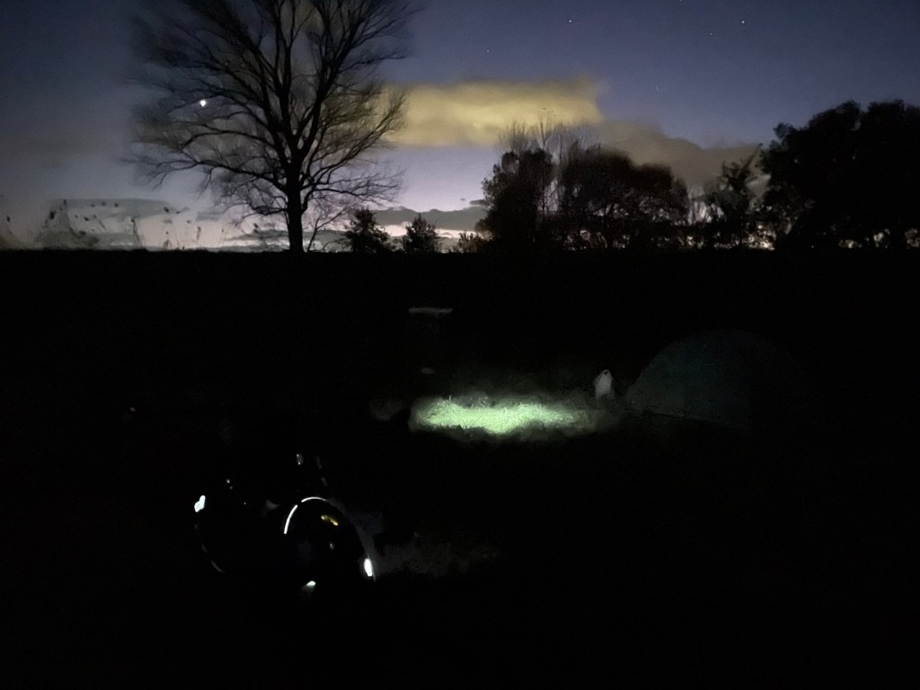 We got changed into warmer clothes and got some dinner out. As we began to choose a place for the tent, bang, again! That was mere minutes. We started a phone timer and considered our options. It was almost dark. But we’d never be able to sleep here. 6 minutes. That was all it was. Not a bird in sight, don’t worry.