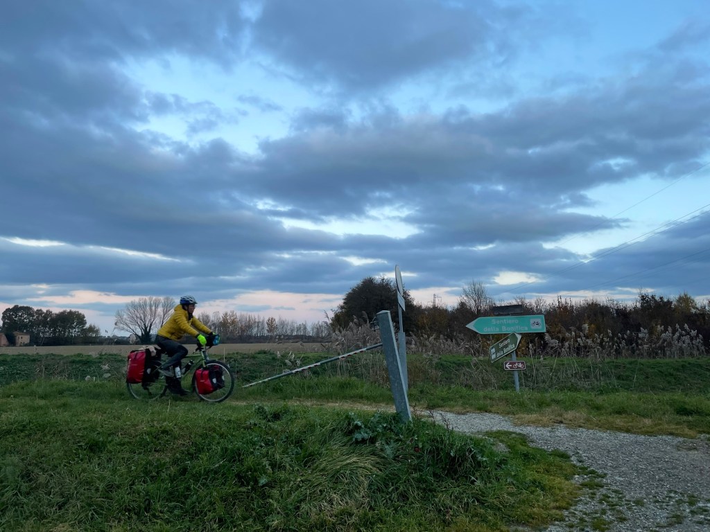 The beauty of camping is that you wake up early and get a jump on the day. We were awake an hour before sunrise and packed away by the break of dawn. The crisp air around us as we continued straight down the master canal to Chiusi. The path continued to be wide gravel track, narrow rocky trail and anywhere in between. To be completely honest, we’d got a little tired of it. It was a little too monotonous and the gravel was hard work despite being flat. Nevertheless, it was car free, which is always more relaxing.