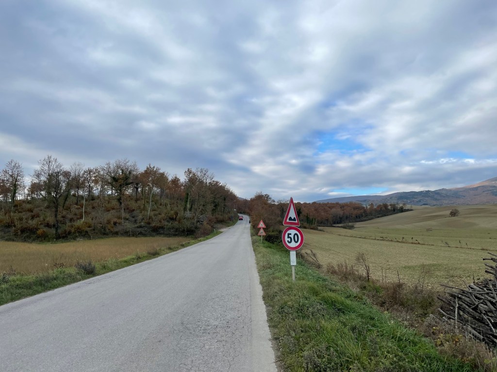 There was a weird little climb near the bottom, we’d been going fast for so long that the sudden change in speed, as well as the hard to read gradient, made it feel like the hardest flat ever. At the bottom we reached the SS2, just outside Ponte del Rigo. There was a sign here for the driving version of the Via Francigena, we had no idea there was such a thing as a driving pilgrimage! We’d already checked street view to identify the viability of riding on this road as it bucked the trend of SS roads being large and fasf. We had a choice here, either follow the official route and climb at least 400m of election over 14km, or take the SS2 directly to Acquapendente over 7km with 186m to climb.