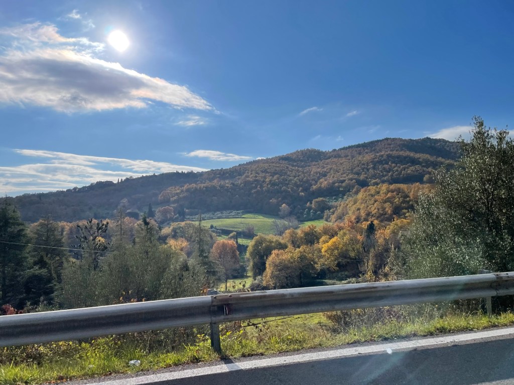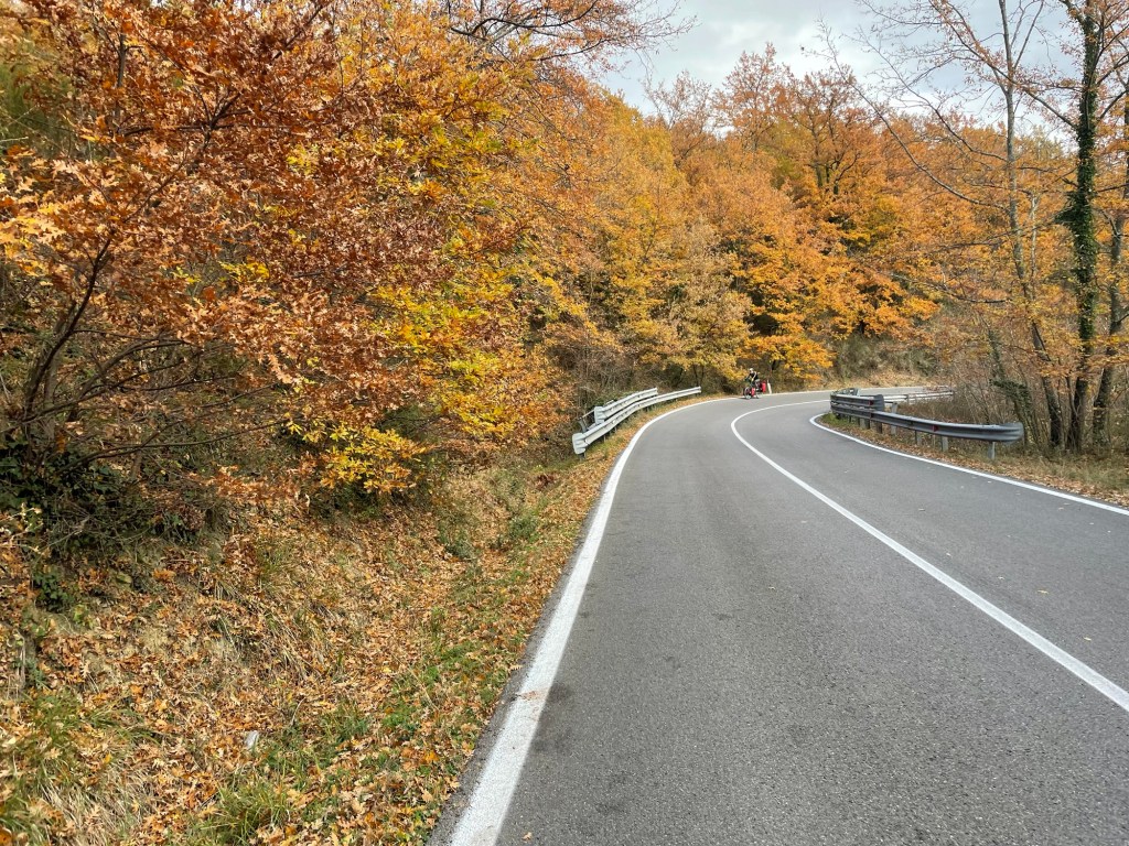 From Ponticelli we embarked on a beautiful winding climb up through the mountains. It was a more consistent gradient that we’d become accustomed to. We soon became very warm in the Sun and given the attire of the locals, they must have thought we were crazy to be in a single layer of clothing. The scenery was sublime, a huge area of woodland spread out in front of us, coloured with every autumnal shade you could think of. The road was also mostly well surfaced.