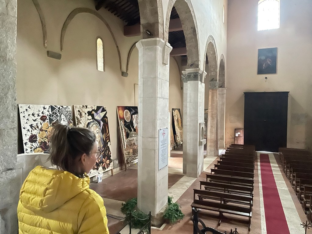 We rode for an hour or so, over many bridges, past Lago di Chiusi which wasn’t as picturesque as we’d hoped, and waved a reluctant hello to hunters with their dogs before arriving into Chiusi Scalo. We were below actual Chiusi and the route didn’t demand us to go up there. We went inside the first coffee shop we came across. A hot drink, and we were fortunate enough to have a vegan croissant each too!