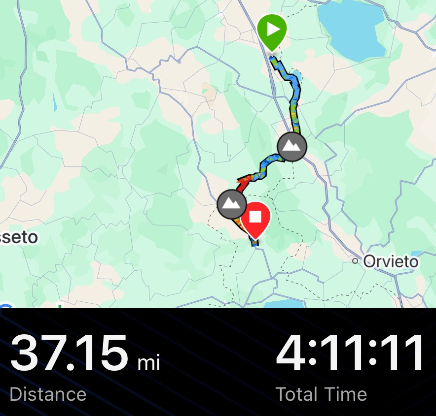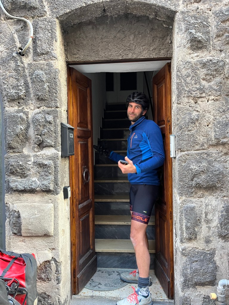 Just outside the town we diverted to finally join EV5. Immediately it became obvious that all of the elevation was a single climb into Acquapendente. It was absurdly steep in places and rejoined the SS2 at the top. Our flat for the night was just inside the town and we located it quickly. We had to unload the panniers and take the bikes up a flight of stairs. It was a lovely little apartment but had minimal amounts of natural light. The owners had clearly used daylight bulbs everywhere to try and mask this fact.