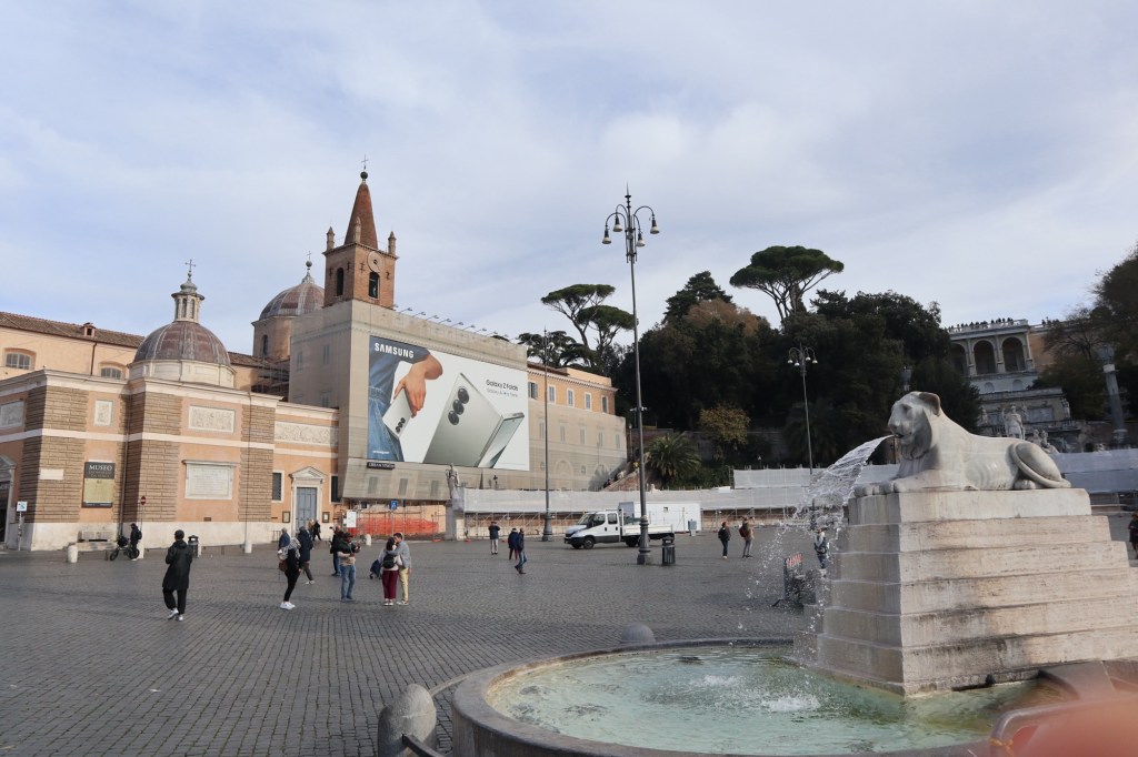 Below the park is Piazza del Popolo which has at least two fountains. The central one, not undergoing repair, presented an actual Egyptian obelisk which was already 2000 years old when it arrived in 10BC. The lions and fountain around it were added in the 1800s. The other obelisks we’d seen were actually fakes.