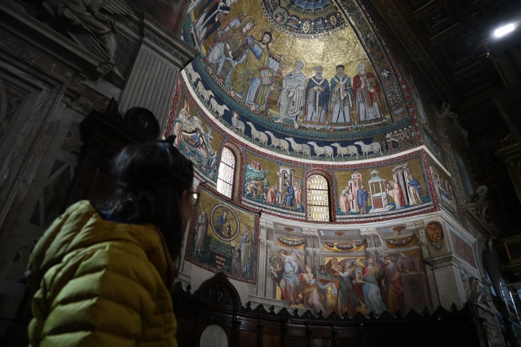 We popped into magnificent churches along the way. One of them had a citrus garden, and we cheekily plucked a lemon for our dinner. After walking up the Spanish Steps, we walked through to the lovely park and gardens known as Villa Borghese. There was a lovely view over Roma, and we visited a temple on a lake before going to an art gallery. It was nice and warm but the art wasn’t particularly exciting to us unfortunately.