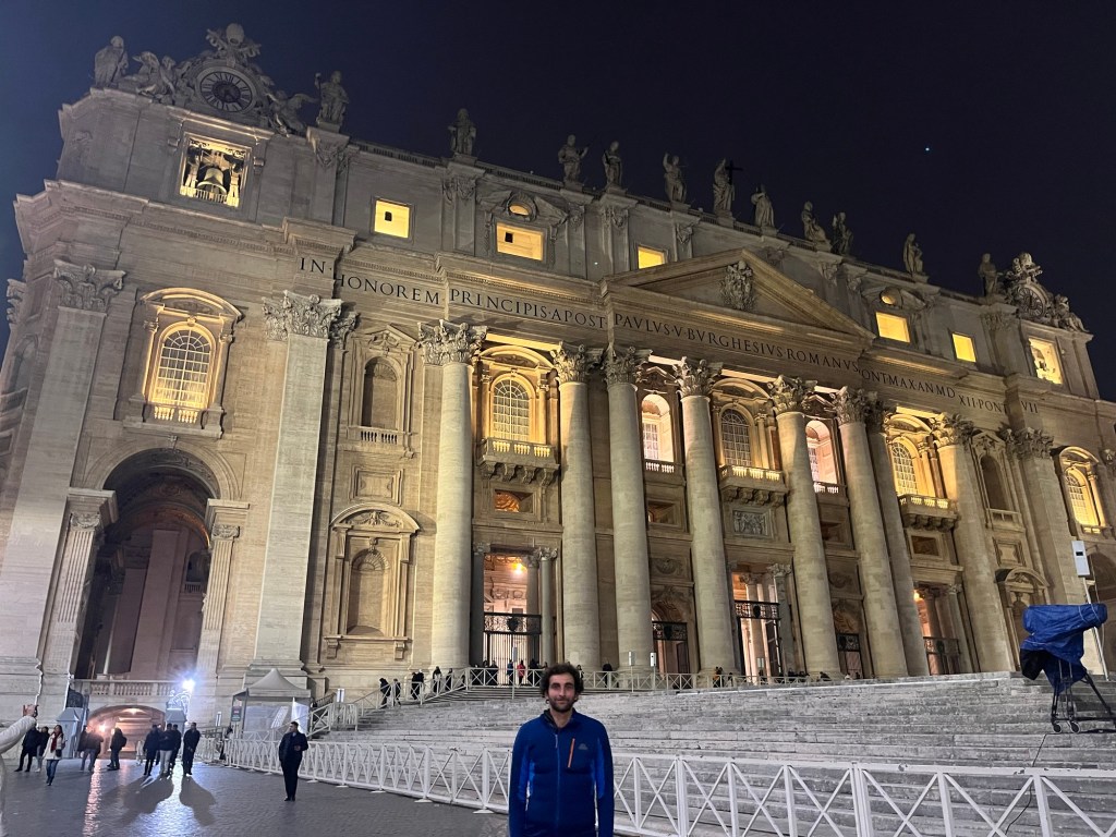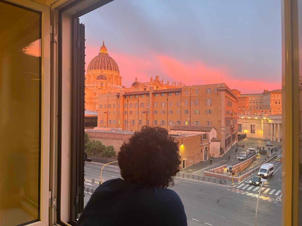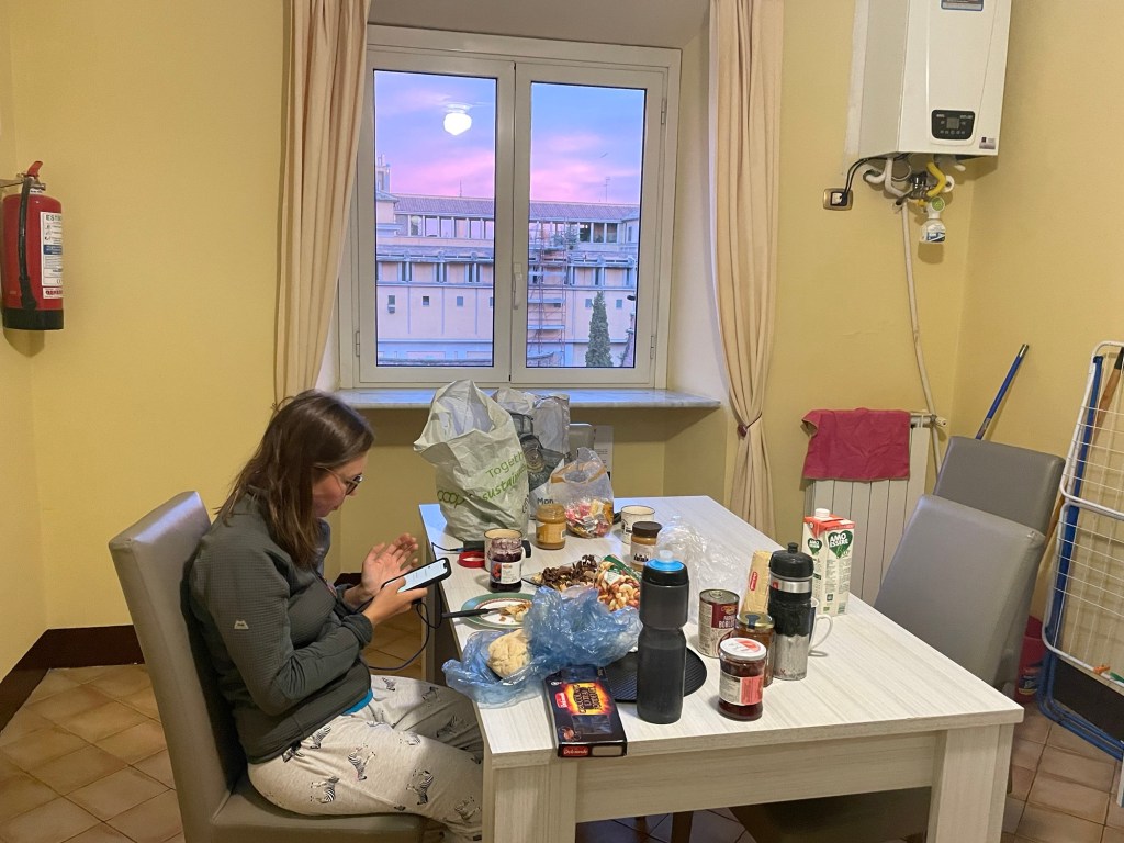 We ate our pasta and watched the Sun descend over the Basilica. We finished watching a film called A Man Called Otto, which was a gentle but sad film before continuing to watch the American version of Accused which we were enjoying quite a lot. After dinner we walked round Piazza San Pietro, we almost thought we would be able to saunter inside but they had closed it early. Just our luck! We went back and finished the tub of cheap tiramisu ice cream we’d found in Eurospin.