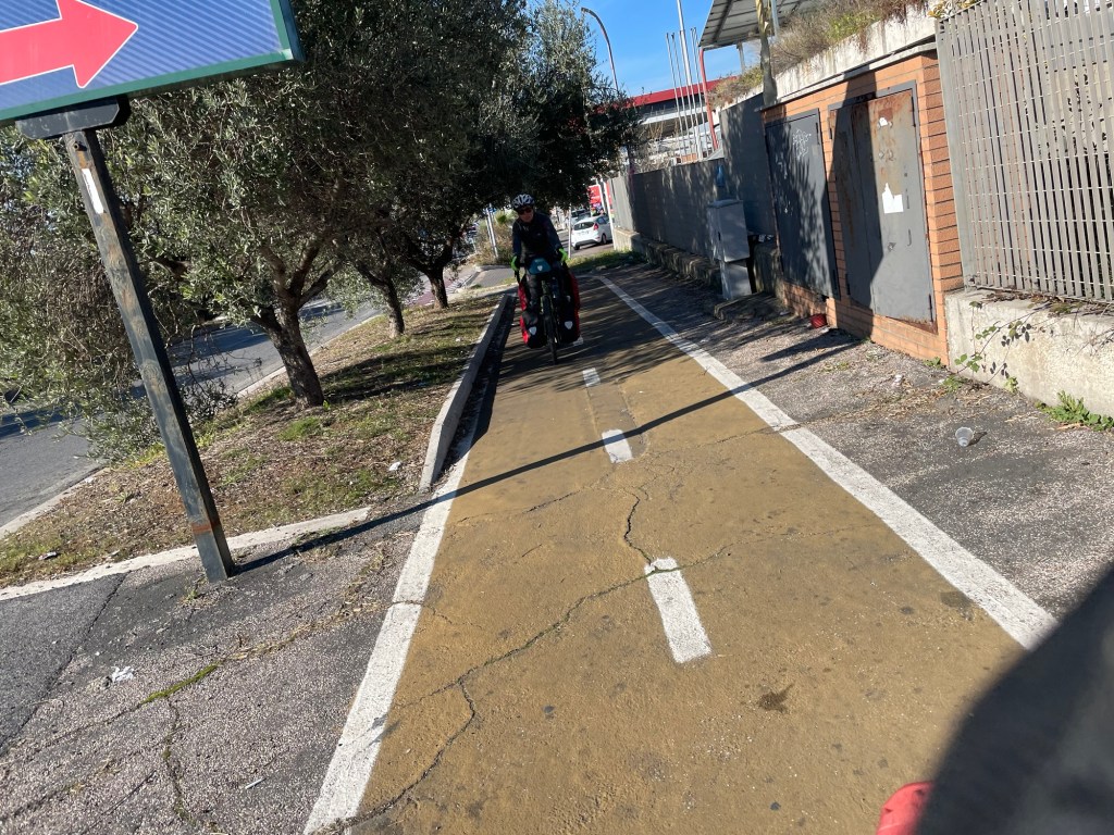 The route out of Roma wasn’t particularly clear. While the EuroVelo appeared to show it using a busy road called Via Palestrina, there was also a suggestion that the metro would be a better option. On the Bicitalia website it helpfully shows an alternative though of course it can’t be guaranteed to be a complete, unbroken, route.