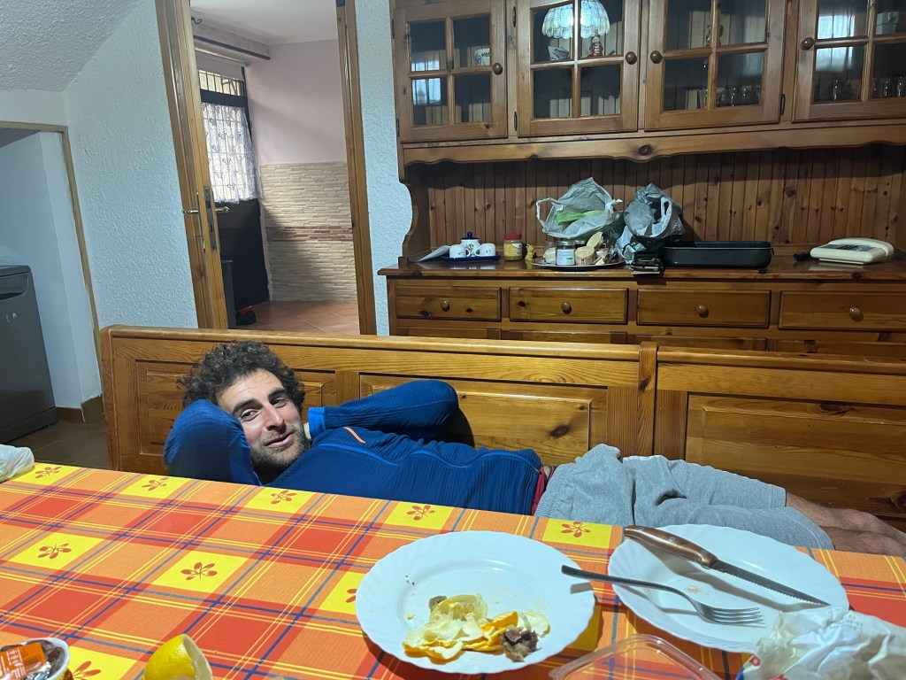 We had planned to do absolutely nothing. Well, very little vertical movement anyhow. We’d bought plenty of food the day before so we didn’t have to leave the house. We had pancakes for breakfast, with plenty of fruit which we had got cheap as it was reduced in the supermarket.