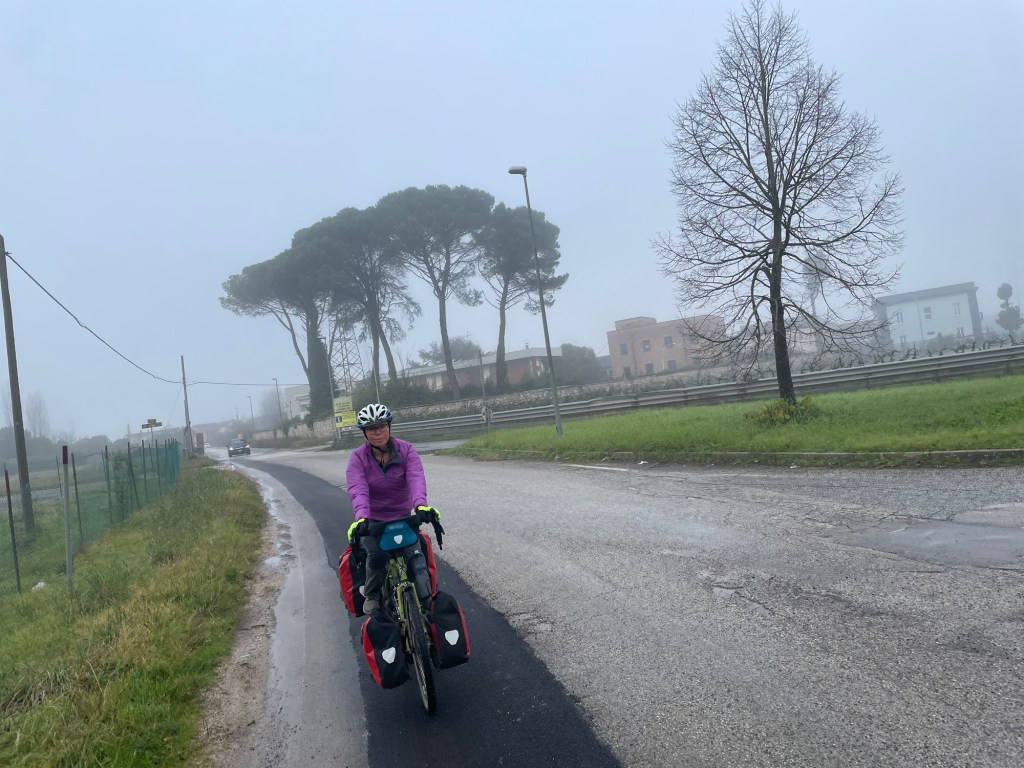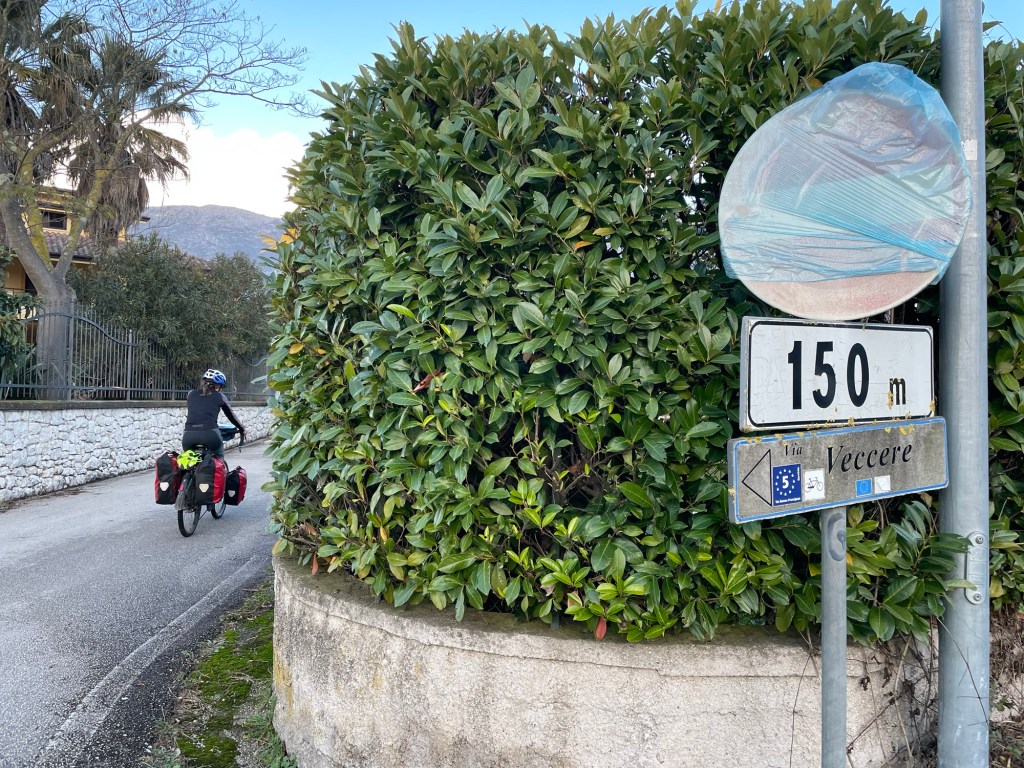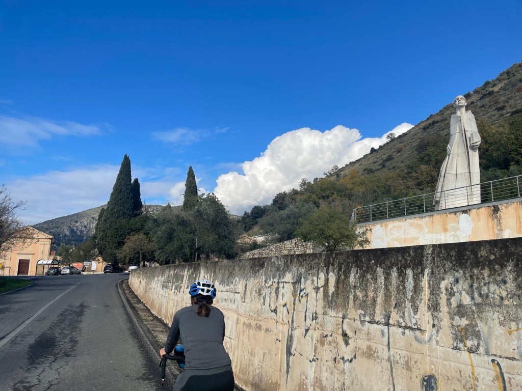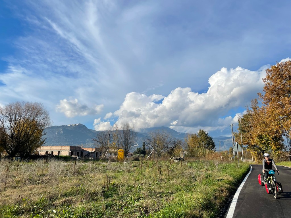 The route was easy going, on tarmac and downhill overall, for about 15km into Cassino. We stopped just before we arrived to snack on dates and biscuits as well as discuss our options for the evening. After Cassino was a large ascent over a pass in the mountains and we’d need to make it this afternoon and finish later or wait till the morning. We were optimistic we could make it.