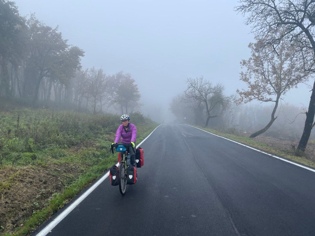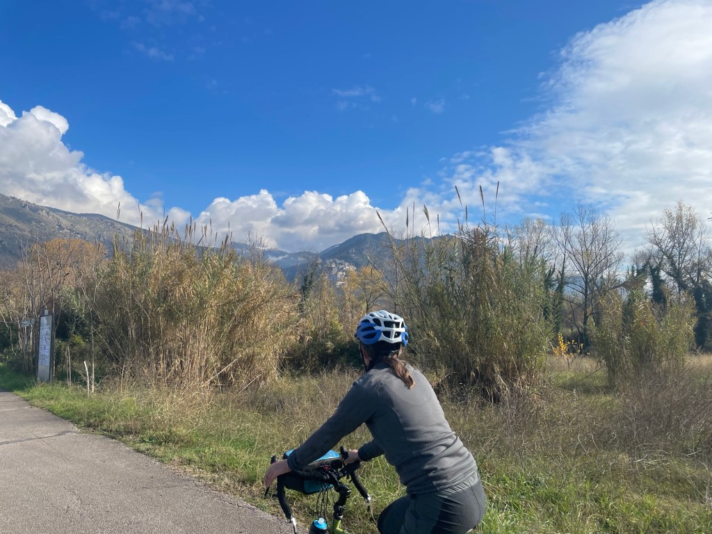 The route took us up one small climb and then through many miles in of farmland. The fog dramatically rising from the fields. As we headed further east towards the town of Roccasecca the clouds began to part ahead of us revealing glorious mountain tops ahead. The Sun began to make more and more of an appearance and as we crossed a bridge it was almost like entering another land.