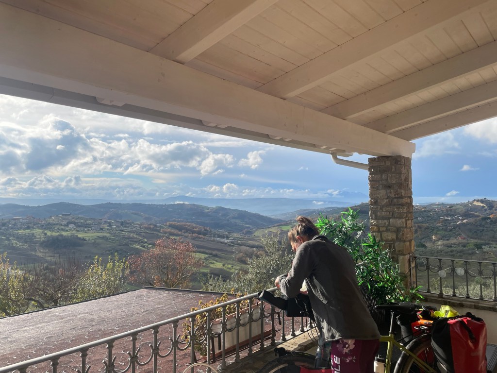 The climb made us a little warmer, but it wasn’t enough. We were at the base of Candela, and as was always the way, the towns are on a perch we were unwilling to climb up to. We hadn’t located a grocery store nearby and we didn’t know whether we would be going further yet. Candela was the point we would be leaving the route of the EV5, which continues to Brindisi. We were instead heading to Bari to catch the ferry to Greece.