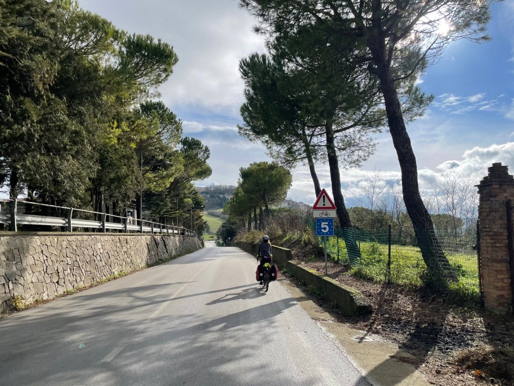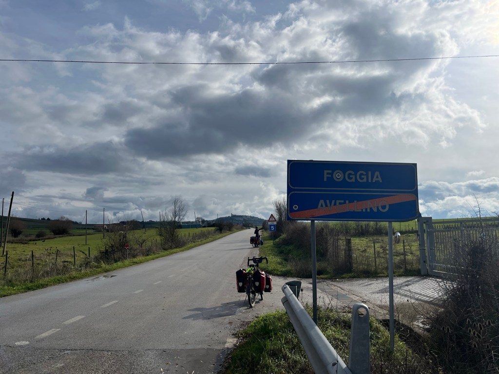 We were entering Puglia, which was to be the last region of Italy we would visit. As we approached Monteleone di Puglia and crossed the boundary we were greeted by the largest EuroVelo 5 sign we’d seen. In fact there were many of them, periodically spaced, along the road. Potentially too many. Still good cycle infrastructure is hard to find. We wondered if the locals knew what it meant or if they’d taken the time to look it up, it’s not like everyone has heard of Eurovelo.