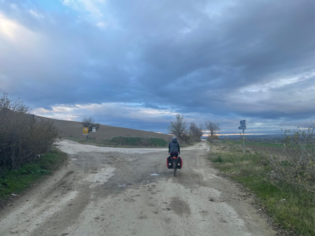 It was far colder than we expected. We were expecting warmer air as we got lower but it didn’t come. The road was wet and at times it felt like the rear tyres were floating on the surface of the road. The perpetual downhill was only interrupted a few times by a slight climb. It blurred together and we were soon on a weirdly straight road, past an old disintegrating bridge, towards Candela. The wind was blowing from the side and we were keen the sharp turn at the end of the road to have the wind behind us and the upcoming climb to keep us warm.