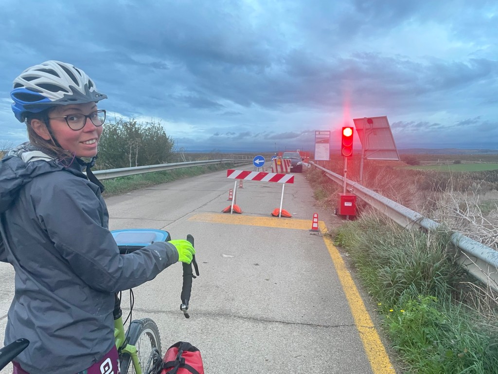 The small village of Moschella at the end of this stretch was occupied but it wasn’t particularly well kept. A dog paused to think, but subsequently chased us out of the village. We now had to leave the route and travel five kilometres to the B&B. On the corner we turned off at was a bundle of car parts scattered over the road. This road was possibly worse than the last, it was extremely bumpy and we had to weave all over it so as to avoid the worst parts. Darkness fell quickly, and we put our lights on while we waited for the lights at a bridge, that like all bridges in Italy, was being repaired.
