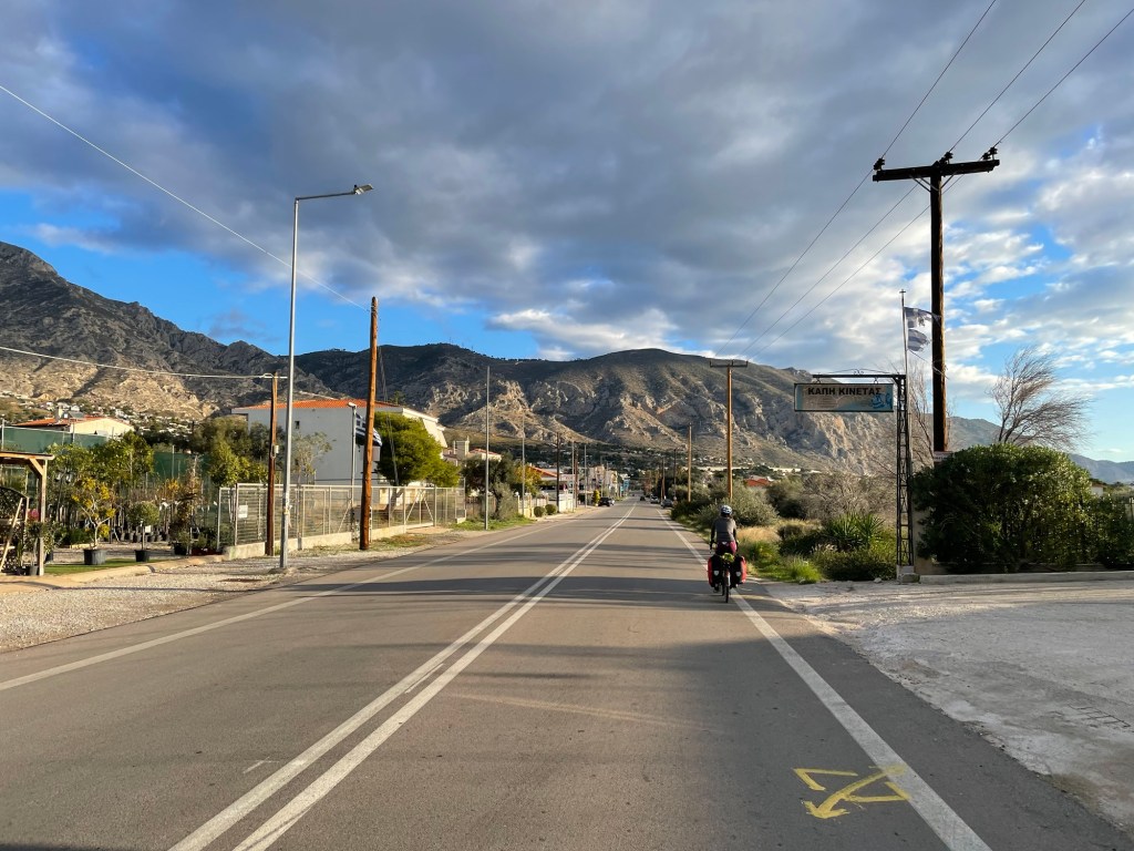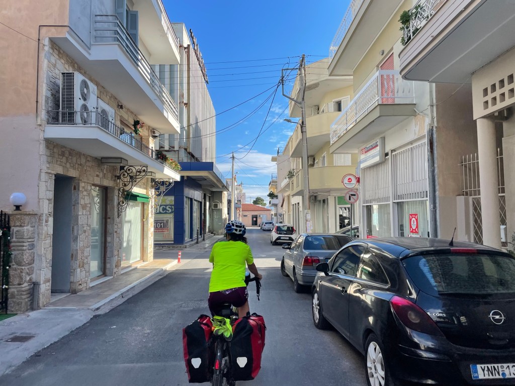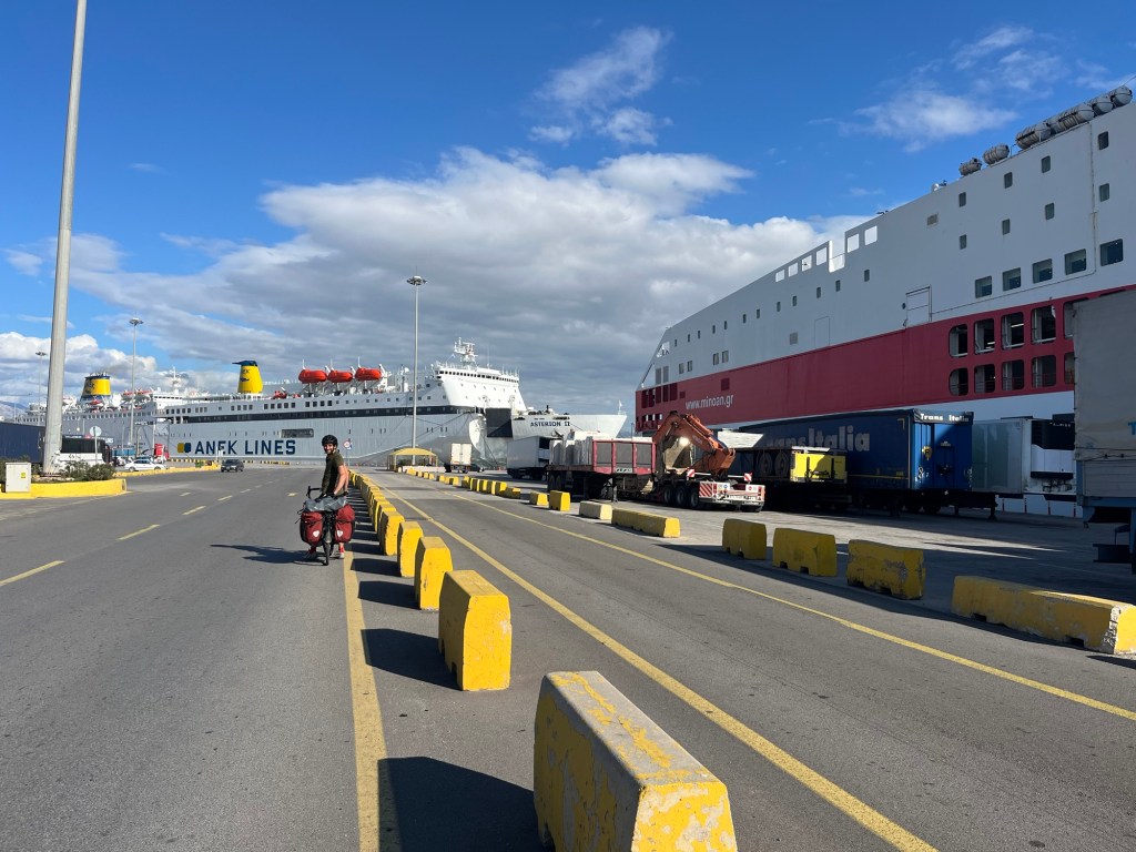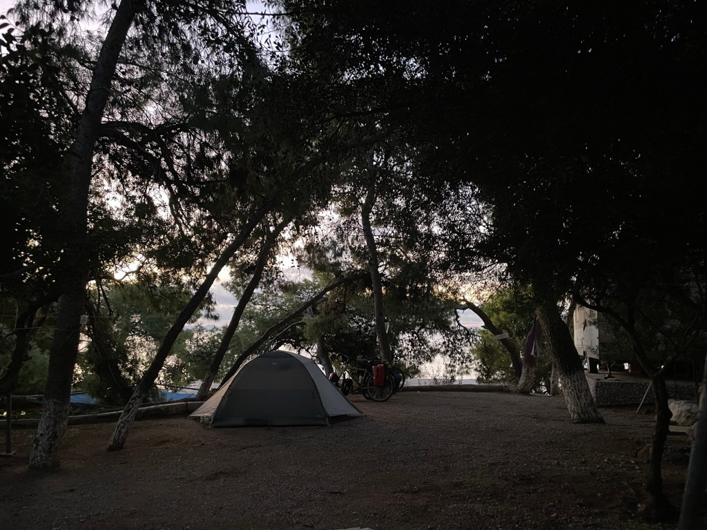 We woke fairly early, probably subconsciously eager to make it to Athens. Reaching Athens felt like it would be a momentous moment in the trip and would be the longest period of rest that we had since leaving. We weren’t there yet though, and though not as tricky as getting to Bari, Athens wasn’t known for being cycle friendly.