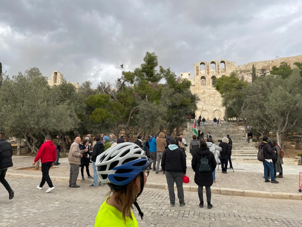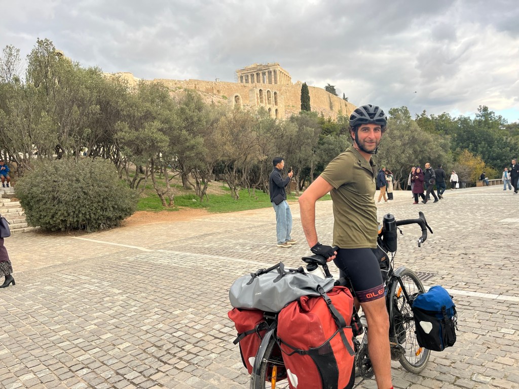 It was such a relief of a path that we went past the place we wanted to turn off to find our apartment. It wasn’t all bad, we instead cycled right below the Acropolis, which was an excellent way to arrive. After the uphill struggle against the cobbles we finally managed to find our accommodation and although it was on the second floor we’d become accustomed to carrying everything up.