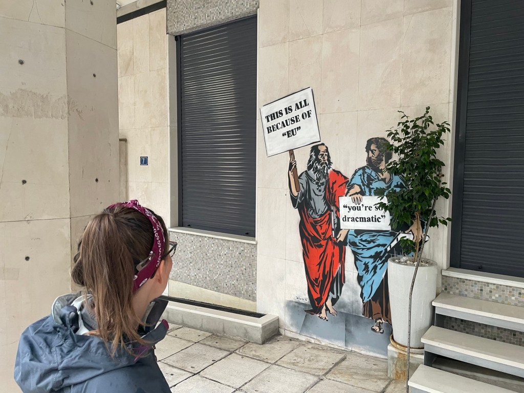 We went for a walk up Philopappos hill, near the flat, opposite the Acropolis. We visited the ‘prison of Socrates’ which probably isn’t a prison he was ever in no matter how many people on google say that he was. There’s a monument up the top of the hill too.