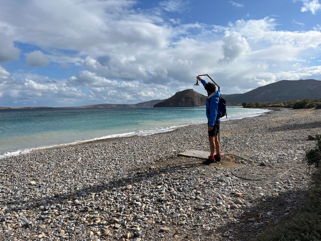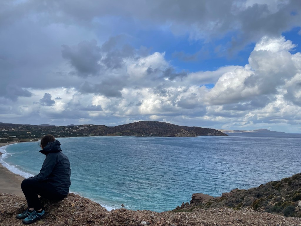 At the other end of the beach is a steel hill known as Kastri. The top is the site of several generations of castles and fortifications, first by the Minoans and lastly by the Venetians. It was tricky to access due to the fences and there’s no real path. We picked a way up and got about halfway but decided it wasn’t worth it. The wind was too buffeting.