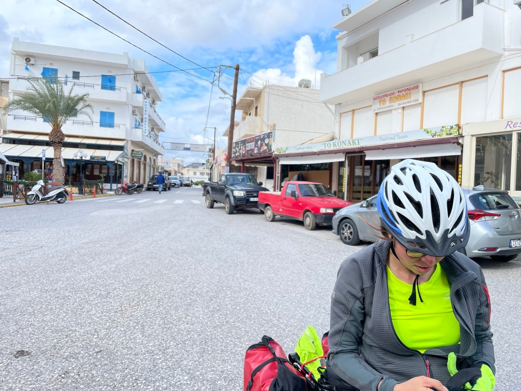 The next hill was bigger and longer, as we crossed over to the eastern coast. It wasn’t difficult but we weren’t at our best after a sleepless night. Fortunately the house we were staying at was ready for us, even though it was only 11am. We descended victoriously into Palekastro, and reviewed the shops we would be relying on for the week. There were several mini markets and a greengrocers as well as a shop titled ‘Meat and more’, which we hoped was more ‘more’ than meat.